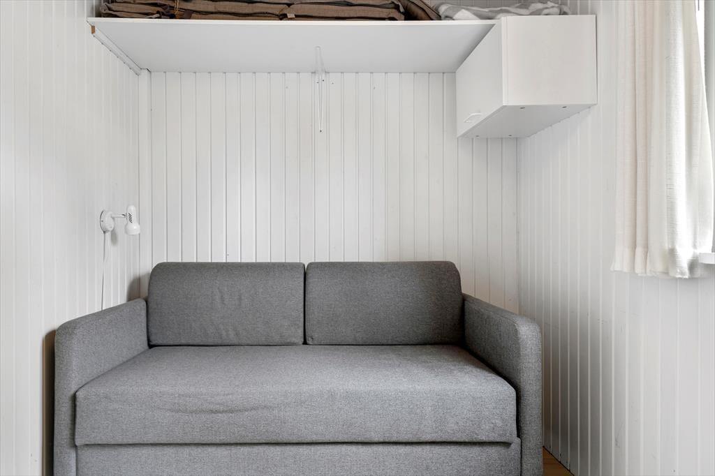 Med sådan en beliggenhed kan du føle dig i tæt kontakt med naturen selv på de dage, hvor du mest af alt har lyst til at hygge dig inden døre. Hvis det er køligt i vejret, kan du tænde op i brændeovnen og slå dig ned i sofaen med en god bog eller tænde for tv’et for at se film eller serier – bare husk at kigge op og ud engang imellem! I opholdsafdelingen sørger de store vinduer for et dejligt lysindfald, og på det største af de to soveværelser kan du ligge i en solstråle og have udsigt til den grønne naturgrund, når du trækker gardinerne fra karnapvinduet.