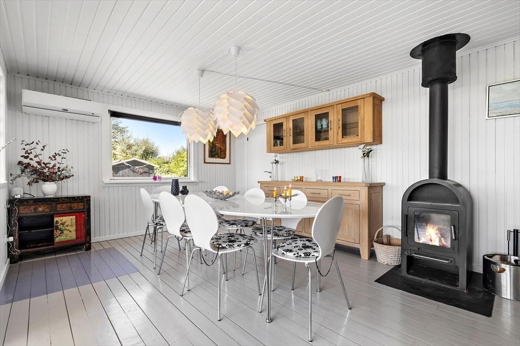Velkommen indenfor: Huset emmer af hyggelig og behagelig atmosfære med en lys og smagfuld indretning. Huset har 3 komfortable soverum med dobbeltseng og et fint værelse med enkeltseng. Huset har et rummeligt badeværelse med brus. Fra den hyggelige stue er der udgang til terrassen og den omkringliggende have. Huset opvarmes via varmepumpe og elradiatorer.Tænd også gerne op i brændeovnen på de køligere dage, og lad feriestemningen brede sig.