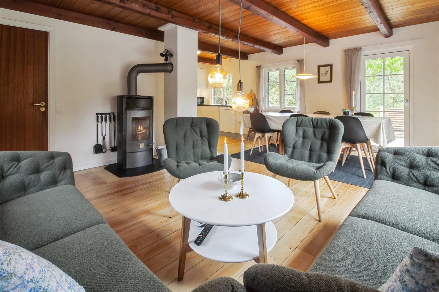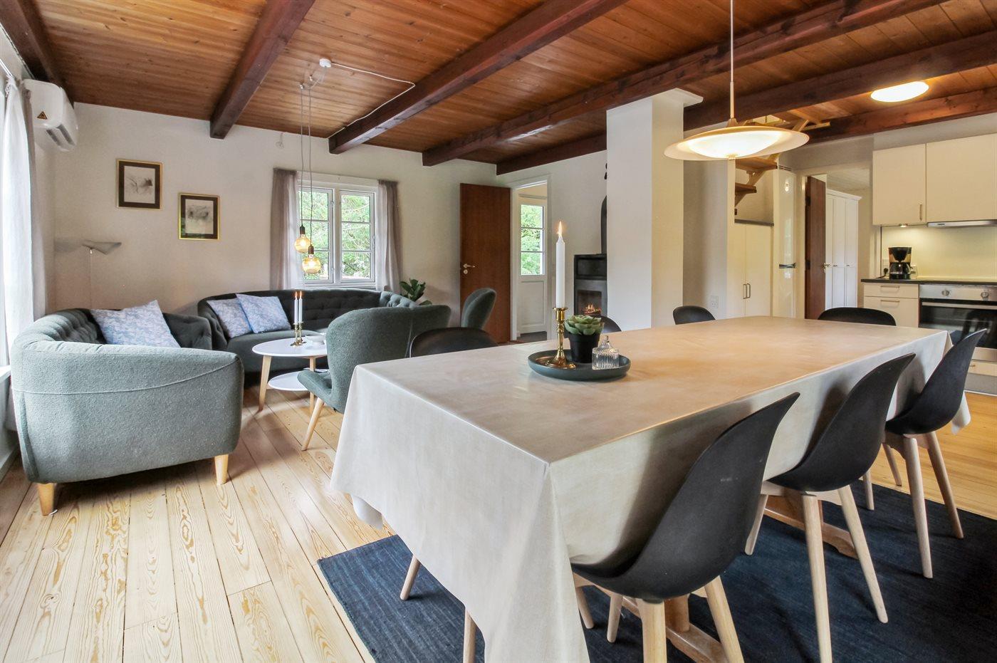 Sommerhuset egner sig til 7 personer samt 1 barn op til 3 år. Ferieboligen er på 100 m² og er bygget i 1966. Det er tilladt at medbringe 2 husdyr. Ferieboligen er udstyret med 1 energivenlig luft til luft varmepumpe. Ferieboligen har vaskemaskine. Tørretumbler. Frysekapacitet på 60 liter. Der er desuden brændeovn. Til de små er der 1 stk. barnestol.