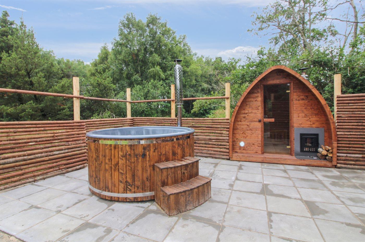 Der er mulighed for afslapning i det udendørs vildmarkskar til 6 personer.