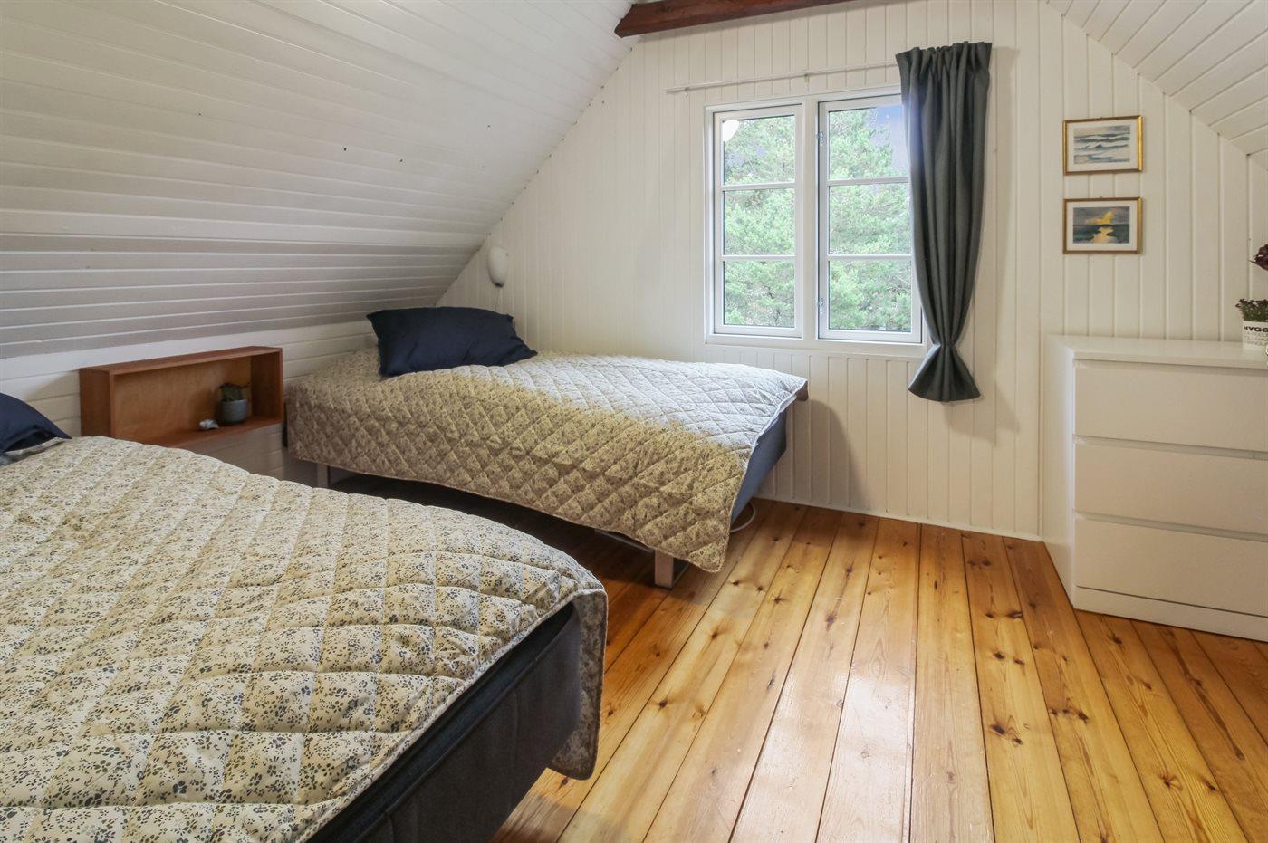 Der er i alt 3 soveværelser. Sovepladserne fordeler sig på: 7 sovepladser i enkeltsenge. Derudover er der 1 stk. barneseng.