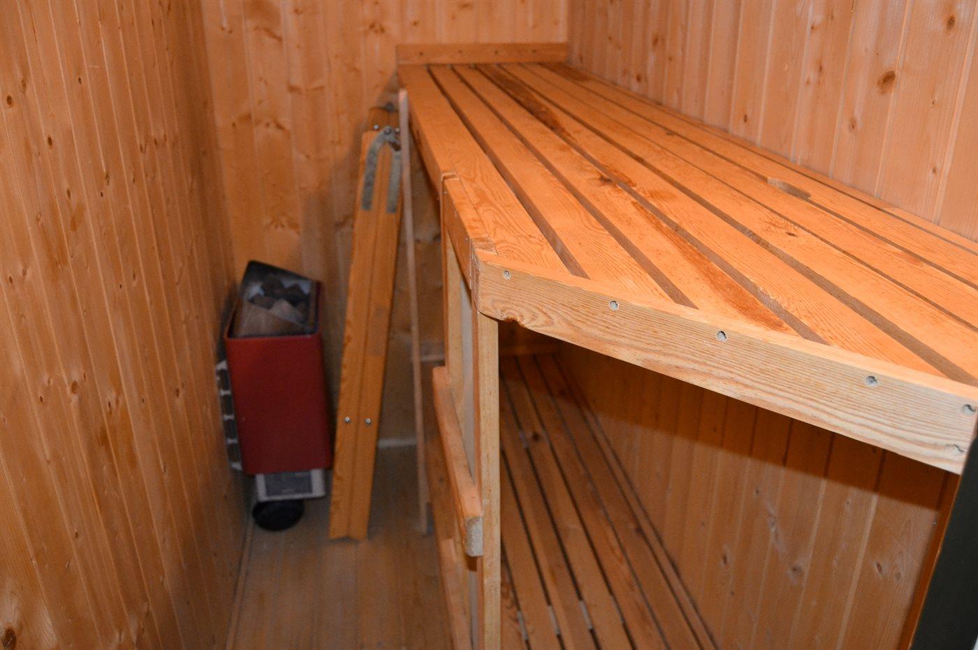 Der er 1 badeværelse med bruseniche og 1 toilet.. Der er gulvvarme på 1 badeværelse. I saunaen er der mulighed for afslapning.
