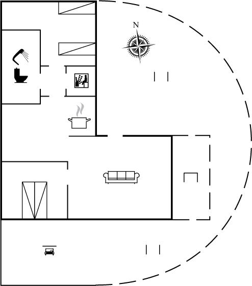 Køkkenet er udstyret med 1 køleskab. Der er 4 elkogeplader, bageovn, mikrobølgeovn samt opvaskemaskine.