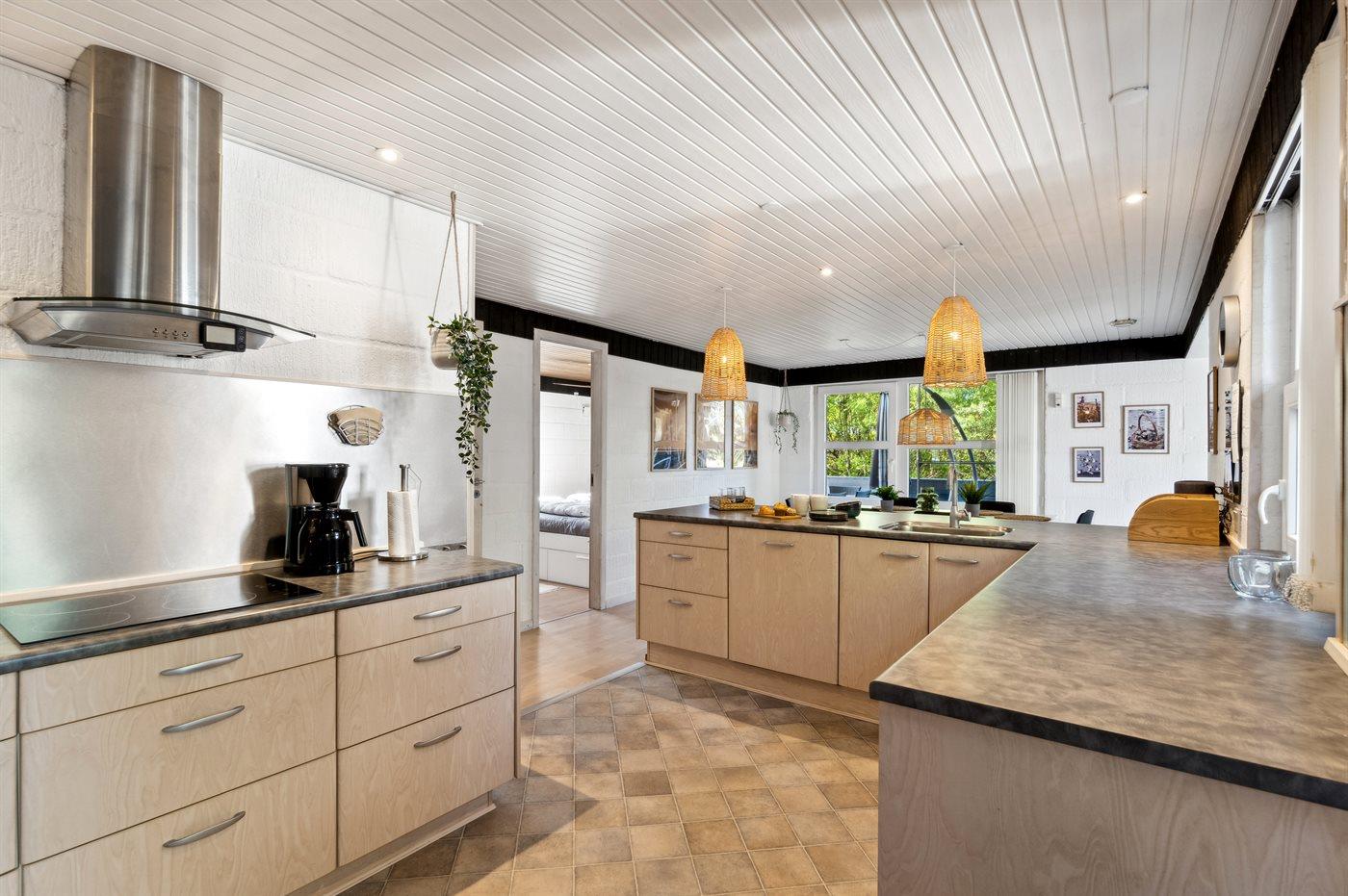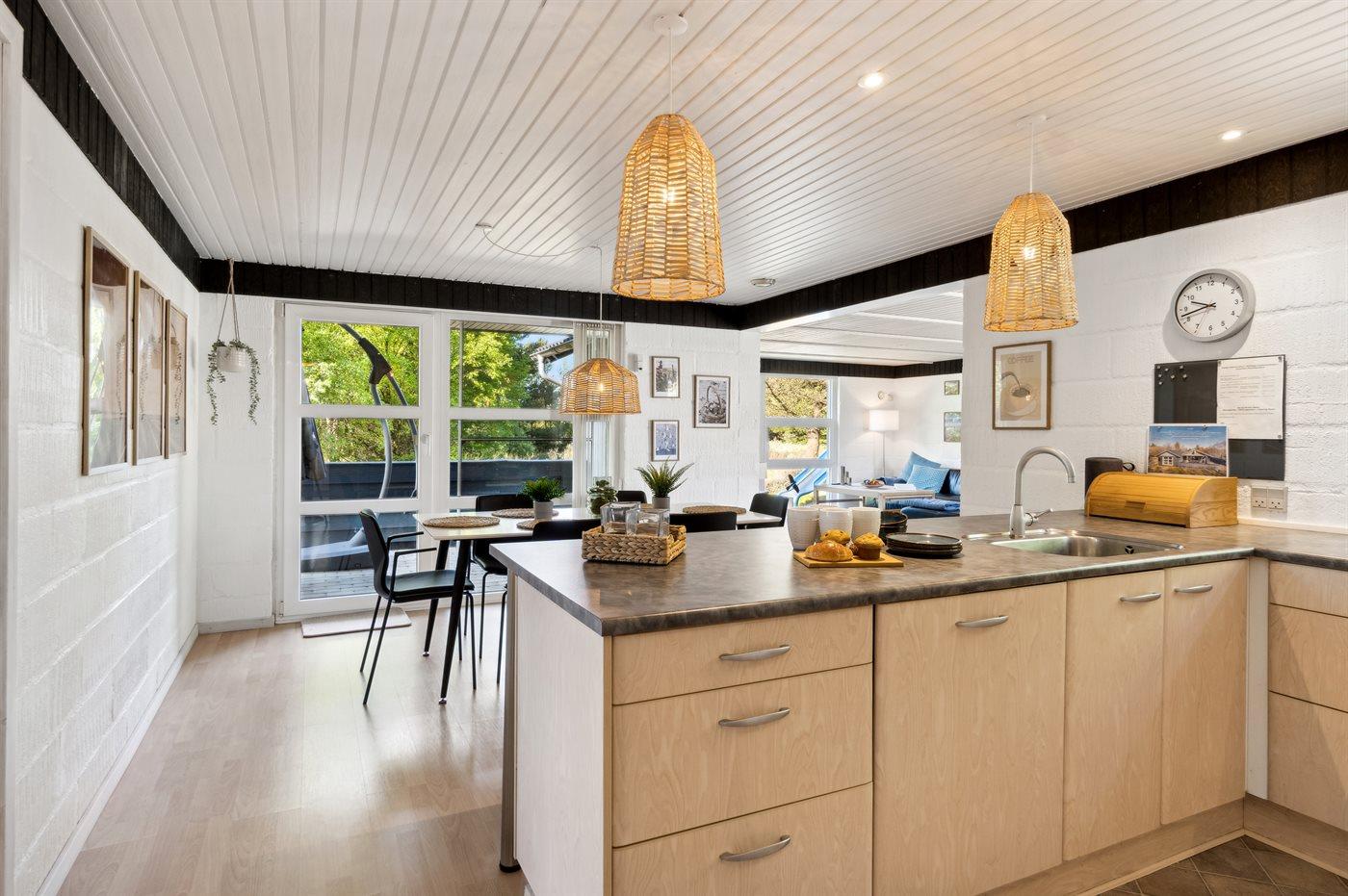 Køkkenet er udstyret med 1 køleskab. Der er 4 keramiske kogeplader, varmluftovn, mikrobølgeovn samt opvaskemaskine.