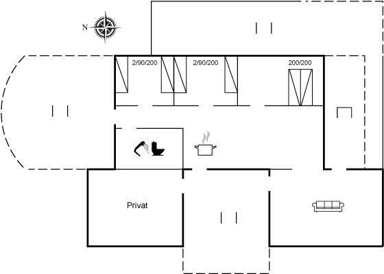 Der er i alt 3 soveværelser. Sovepladserne fordeler sig på: 2 sovepladser i dobbeltseng. 4 sovepladser i enkeltsenge.