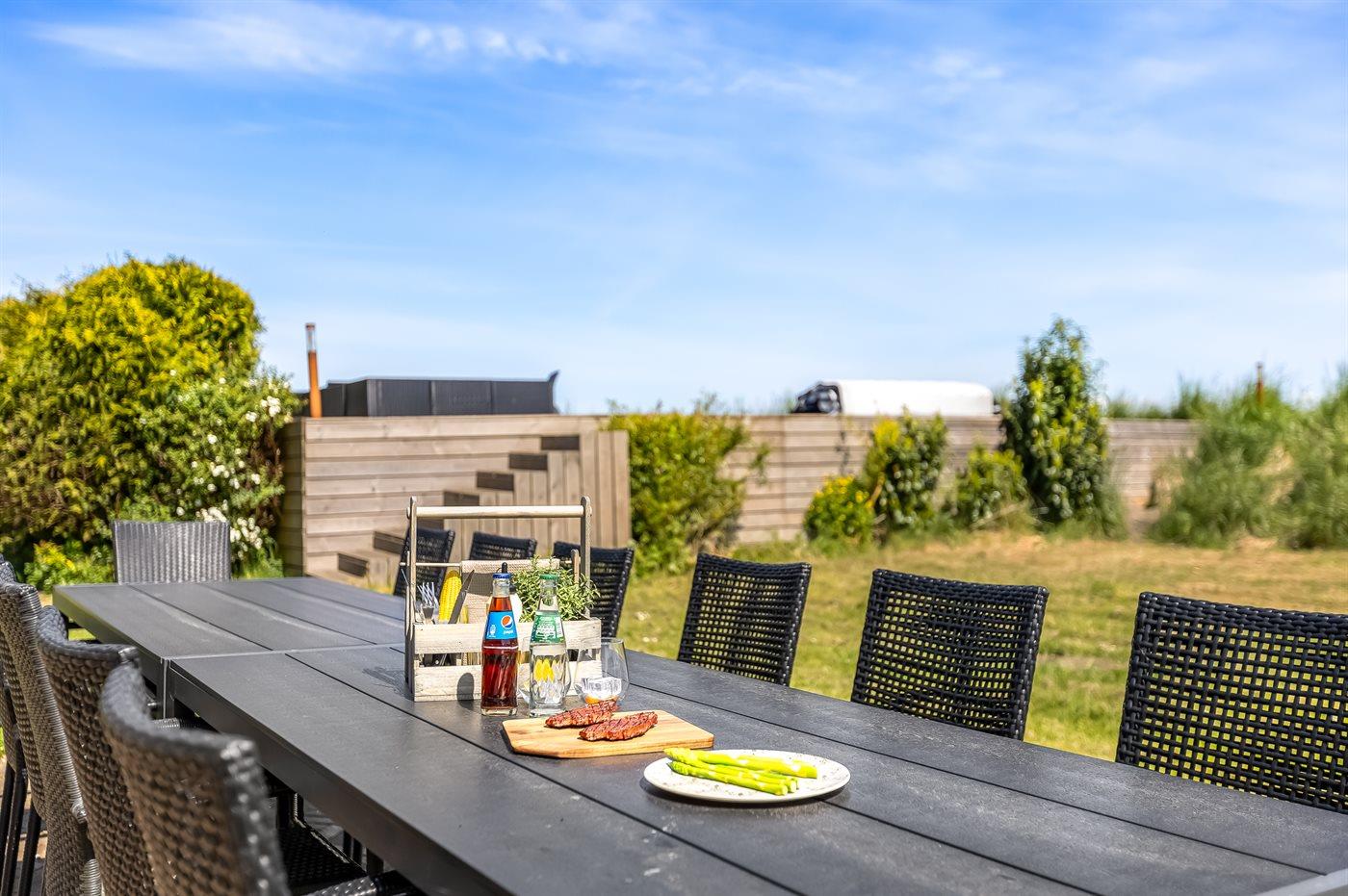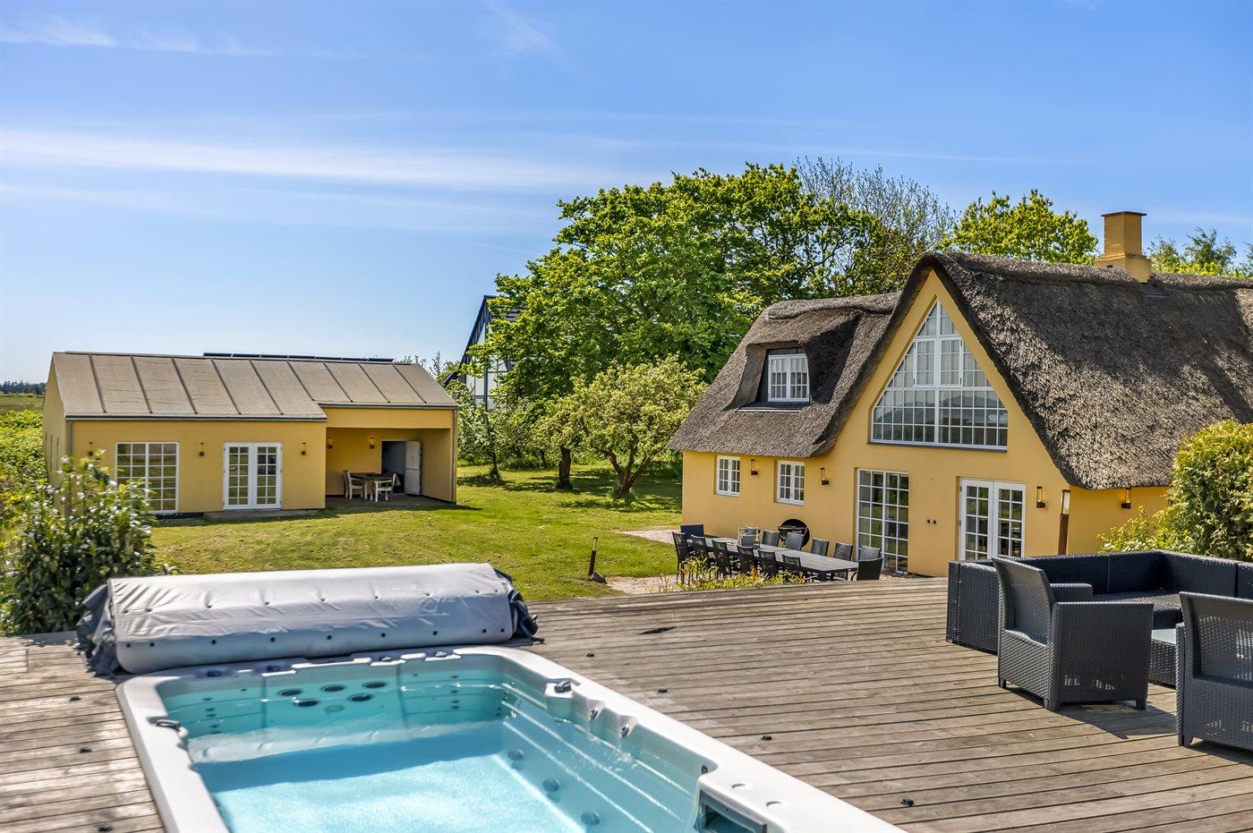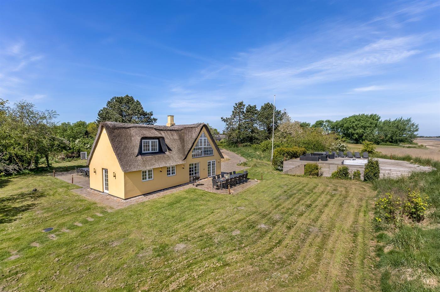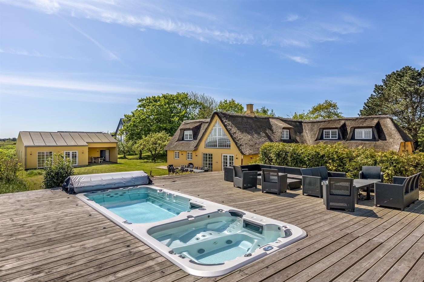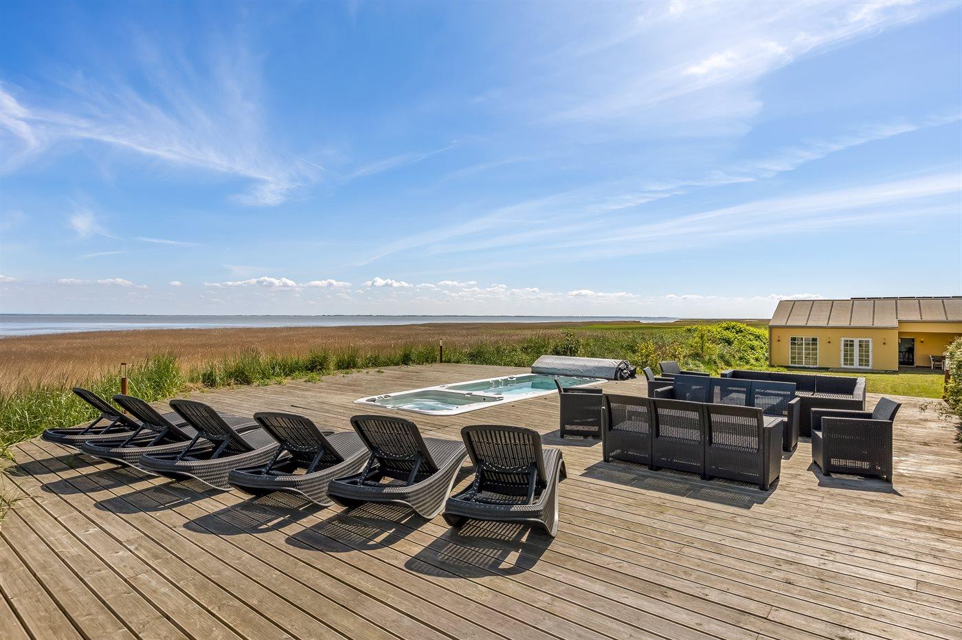 Dejligt og rummeligt luksussommerhus beliggende på en meget stor grund lige ud til Vadehavet med fantastisk panorama-udsigt over vandet fra såvel hus som grund. På terrassen findes der en skøn udendørs spa med standvand og en svømmespa med svømmetræner - også herfra kan udsigten over vandet nydes.