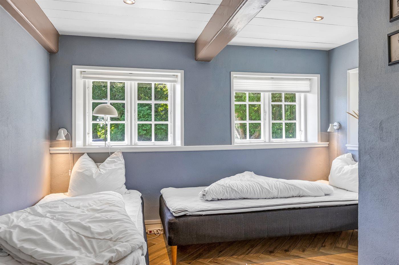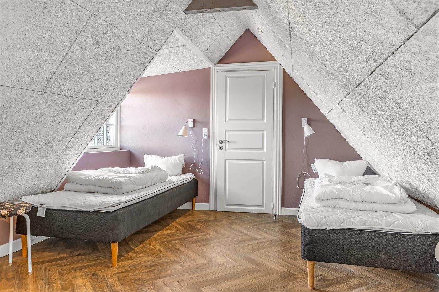Der er i alt 6 soveværelser. Sovepladserne fordeler sig på: 10 sovepladser i dobbeltsenge og 6 sovepladser i enkeltsenge. Til de små er der 3 stk. barnestole samt en babyseng.