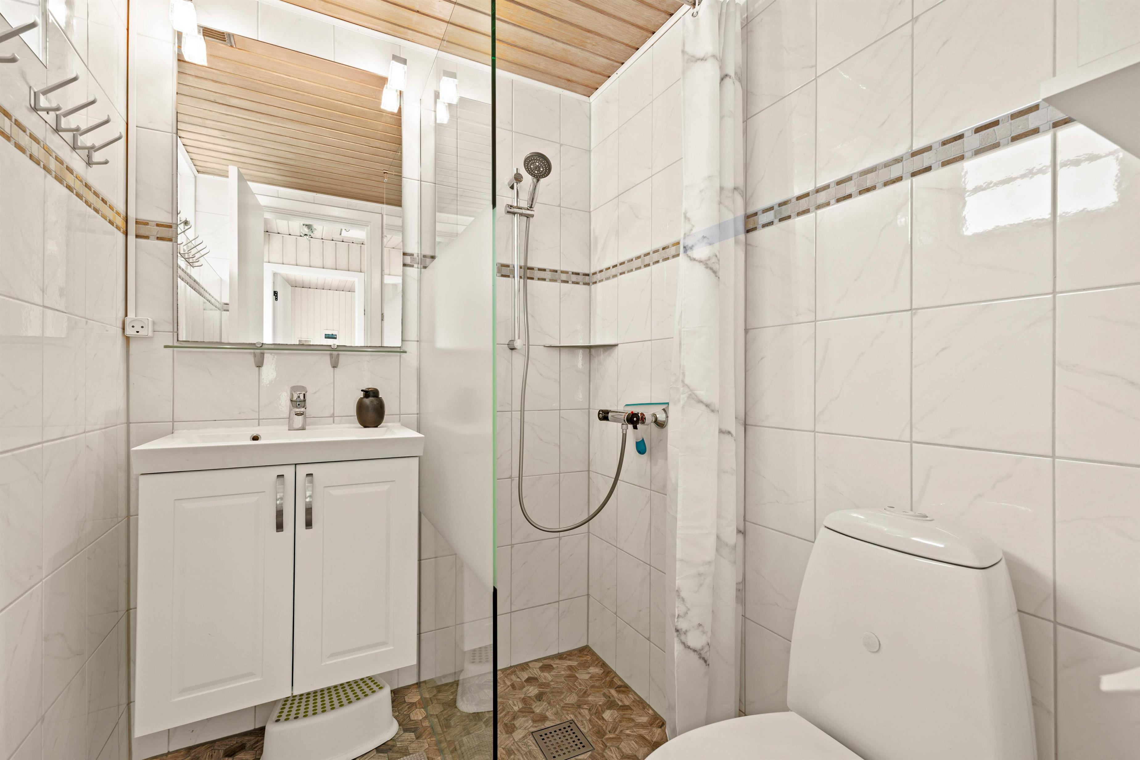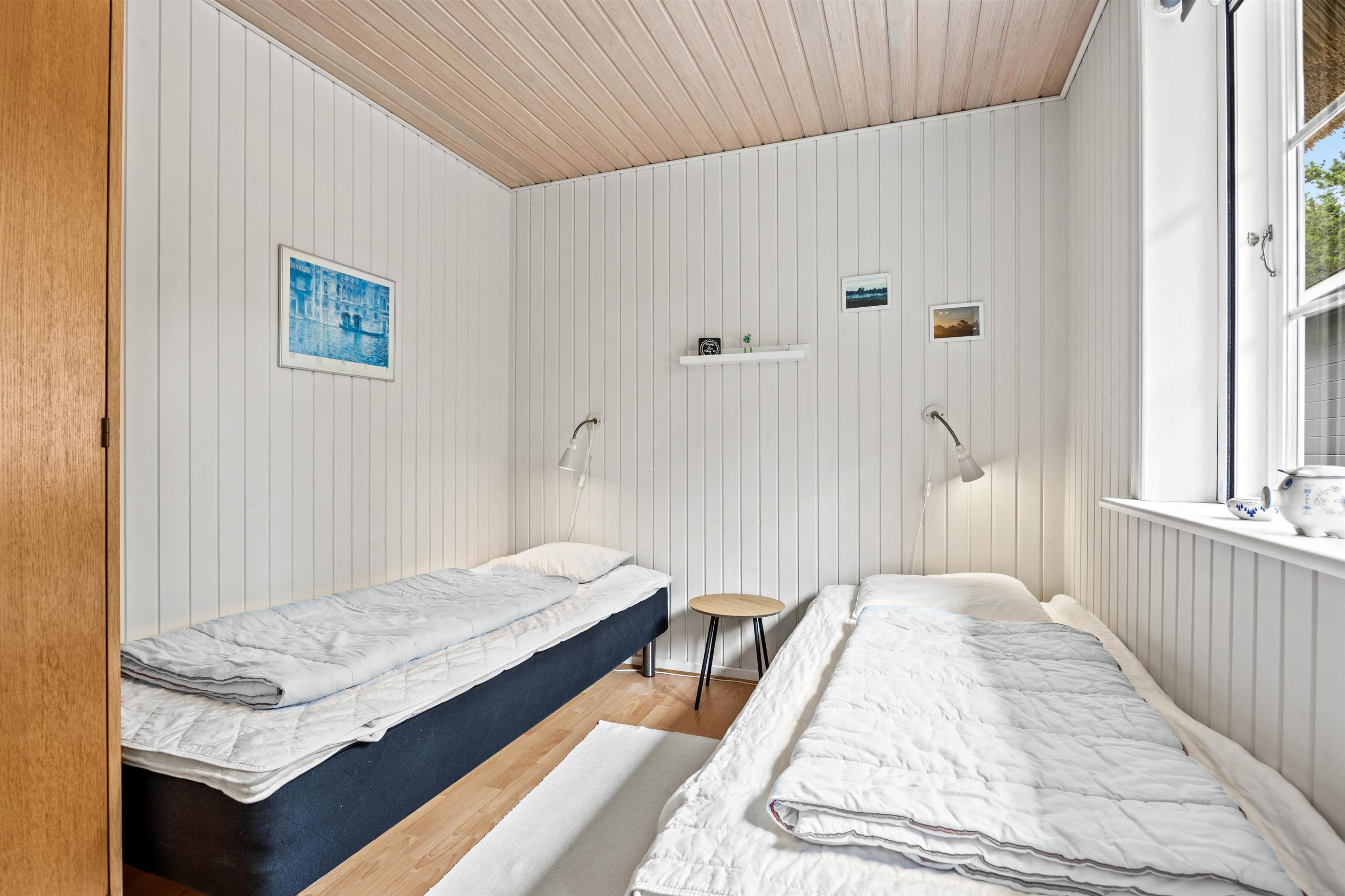 I de 3 soveværelser er der 1 dobbeltseng, 2 enkeltsenge og et børneværelse med en køjeseng og en enkeltseng. Desuden er der badeværelse med bruseniche og sauna samt et gæstetoilet med bruser, så kø på badeværelset burde ikke blive noget problem i dette feriehus. Der er vaskemaskine og tørretumbler samt høj stol, så småbørnsfamilien kan også føle sig hjemme her.