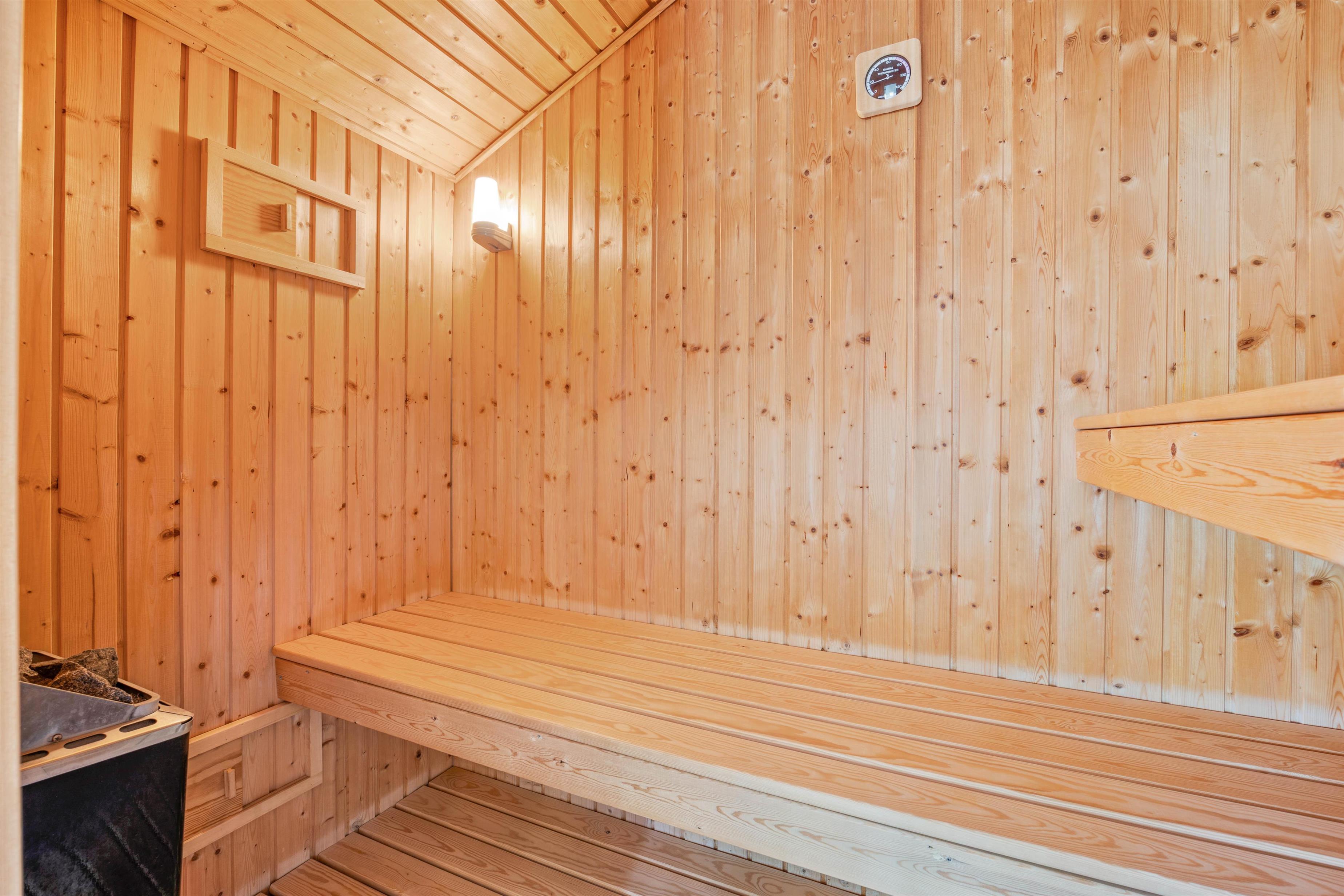 Det rummelige badeværelse har både sauna og spa. Her kan I slappe af og blive varmet igennem efter en lang tur i naturen. Således afslappede kan I sove rigtigt godt i et af de 2 soveværelser med dobbeltsenge – Vesterhavsluften gør noget ekstra godt for nattesøvnen. Der er både opvaskemaskine og vaskemaskine i sommerhuset, så I kan føle jer hjemme her midt i naturen.