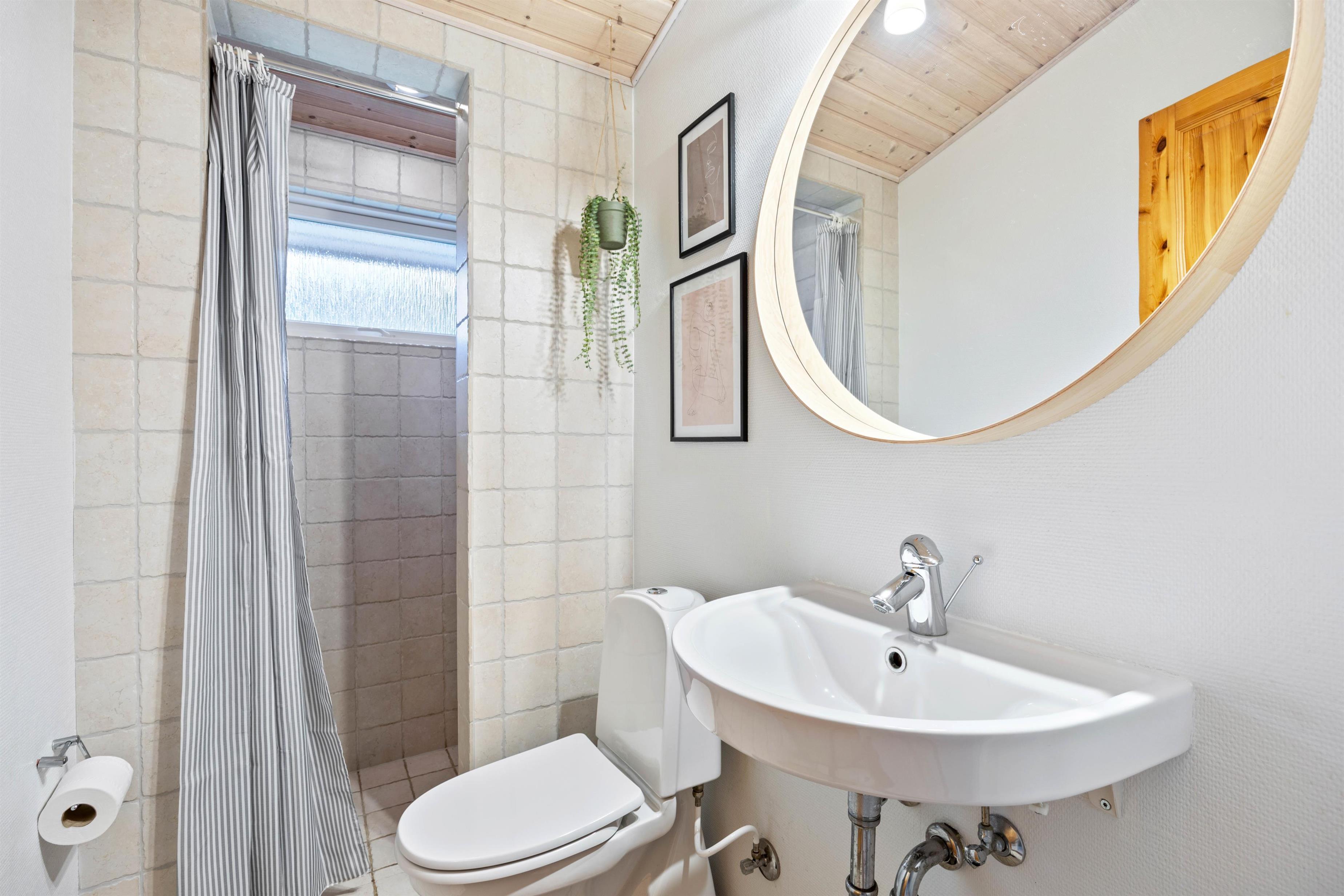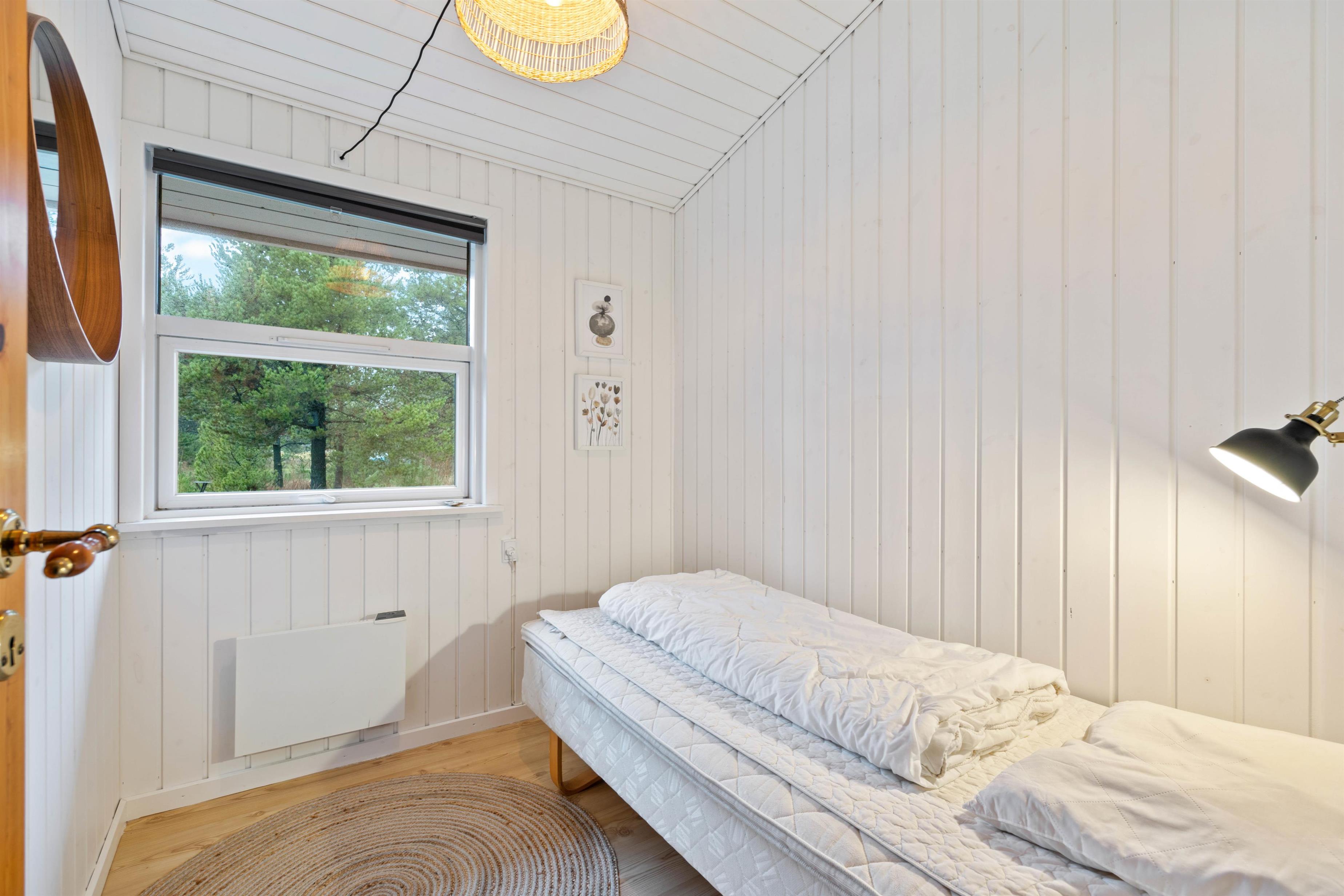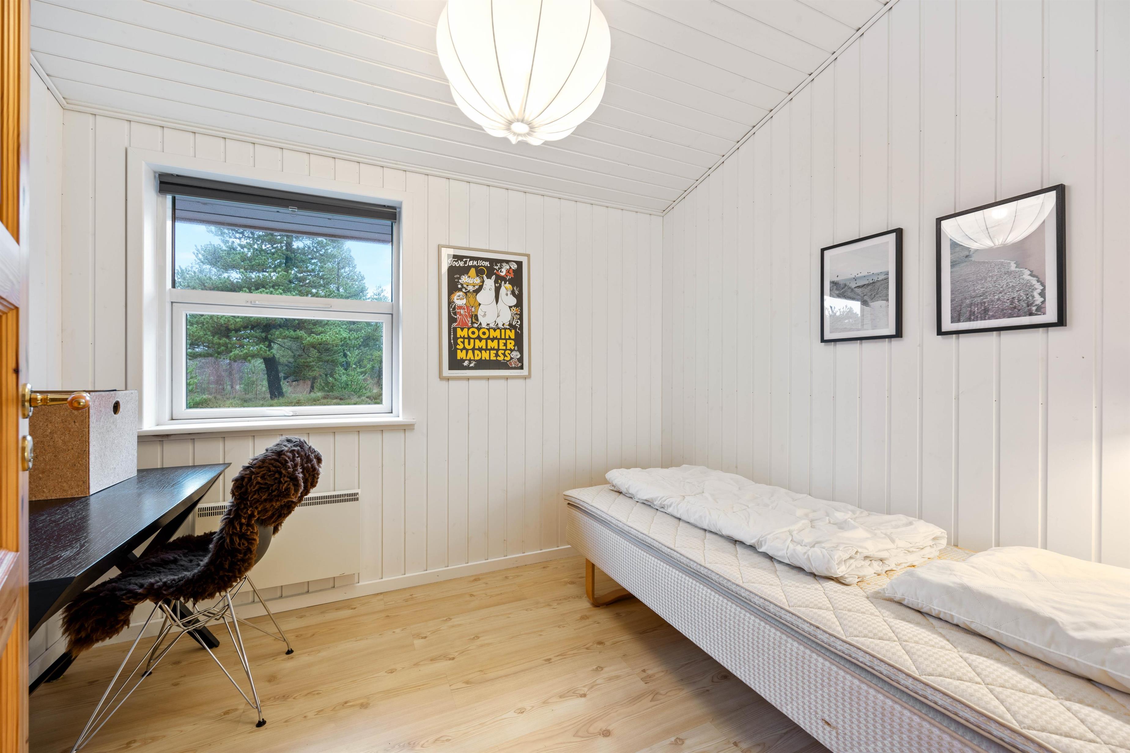 Der er 2 badeværelser med gulvvarme i sommerhuset – i forbindelse med det store badeværelse er også spabad og sauna, så her kan I arrangere jeres egen lille wellnessaften. Soveværelsernes placering tager hensyn til, at I kan få en uforstyrret nattesøvn i den friske vesterhavsluft. Der er 8 komfortable sengepladser fordelt på 5 soveværelser – 2 værelser med dobbeltsenge, 1 værelse med 2 enkeltsenge skubbet sammen til en dobbeltseng og 2 værelser med hver 1 enkeltseng, så I har mulighed for at arrangere jer, som det passer jer bedst. Der er en energibesparende varmepumpe til rådighed for jer på ferien.