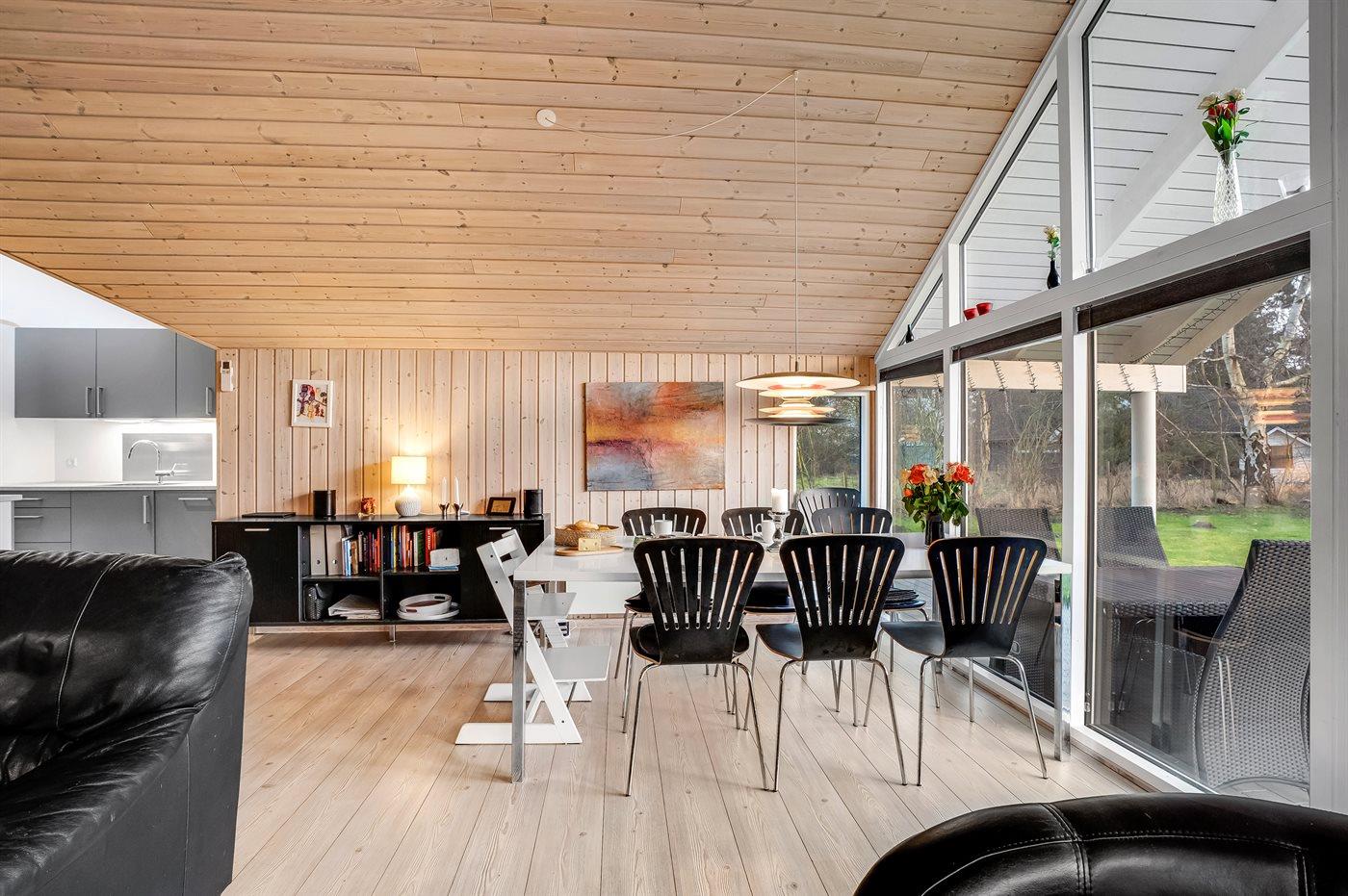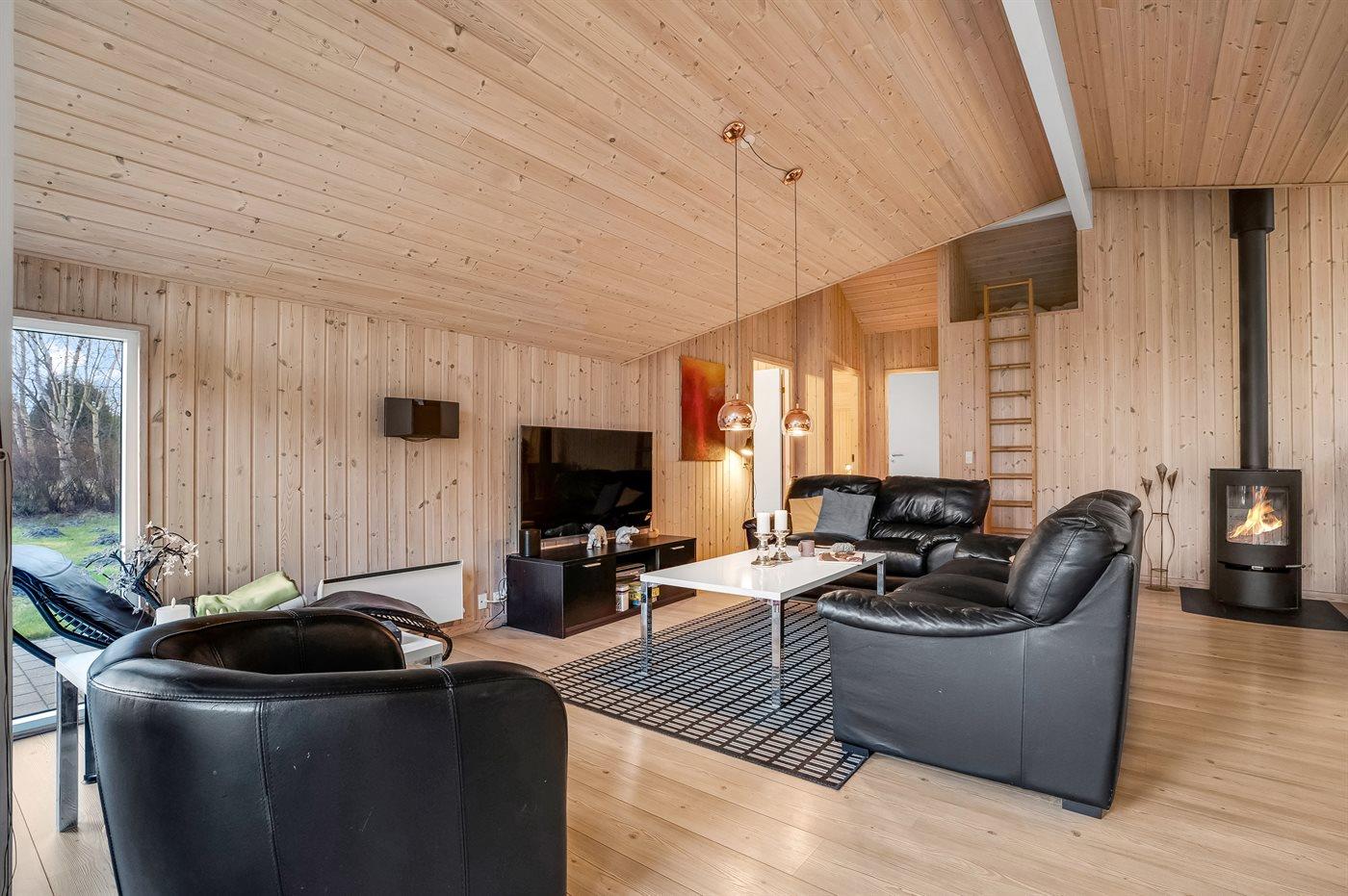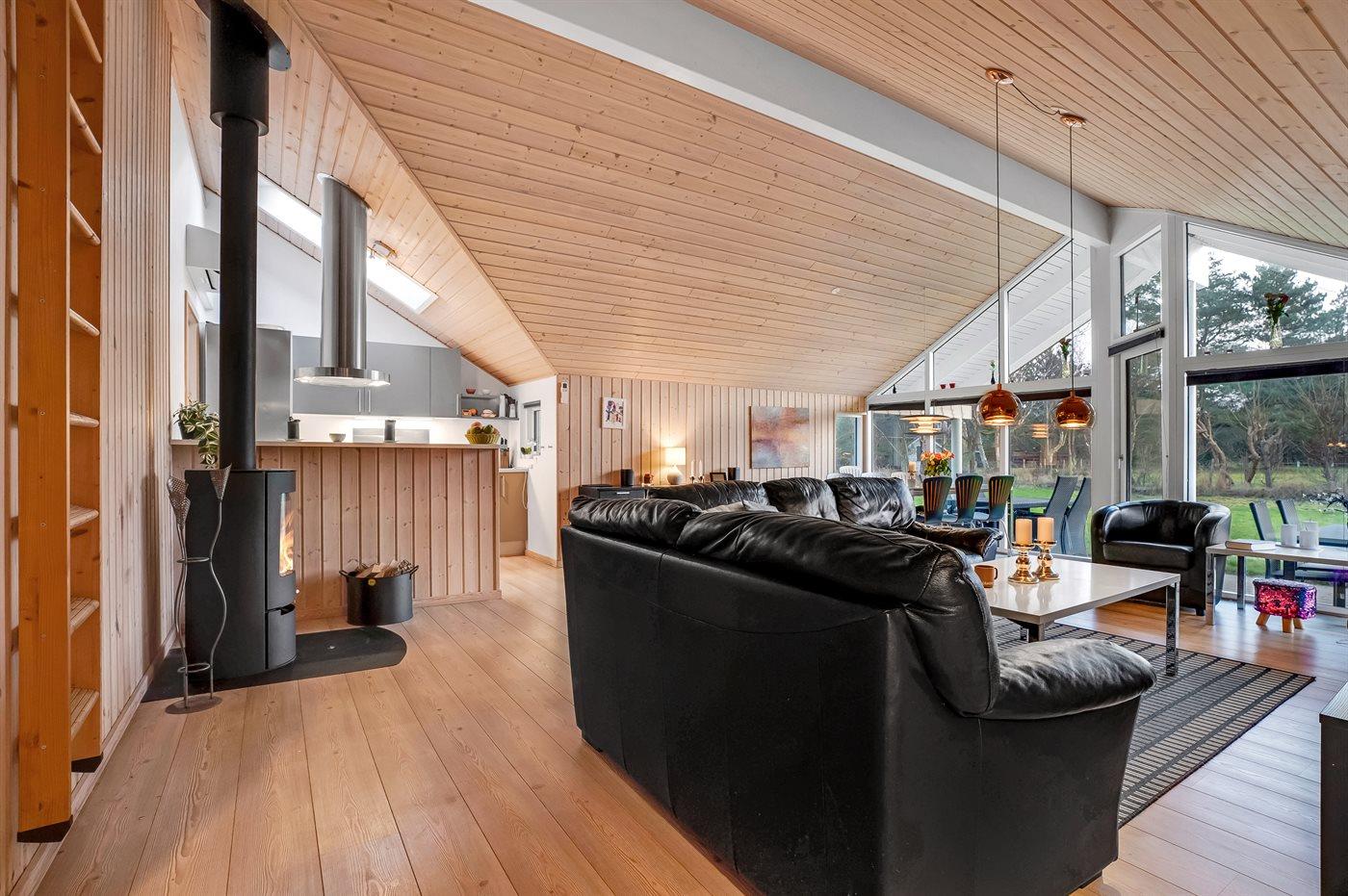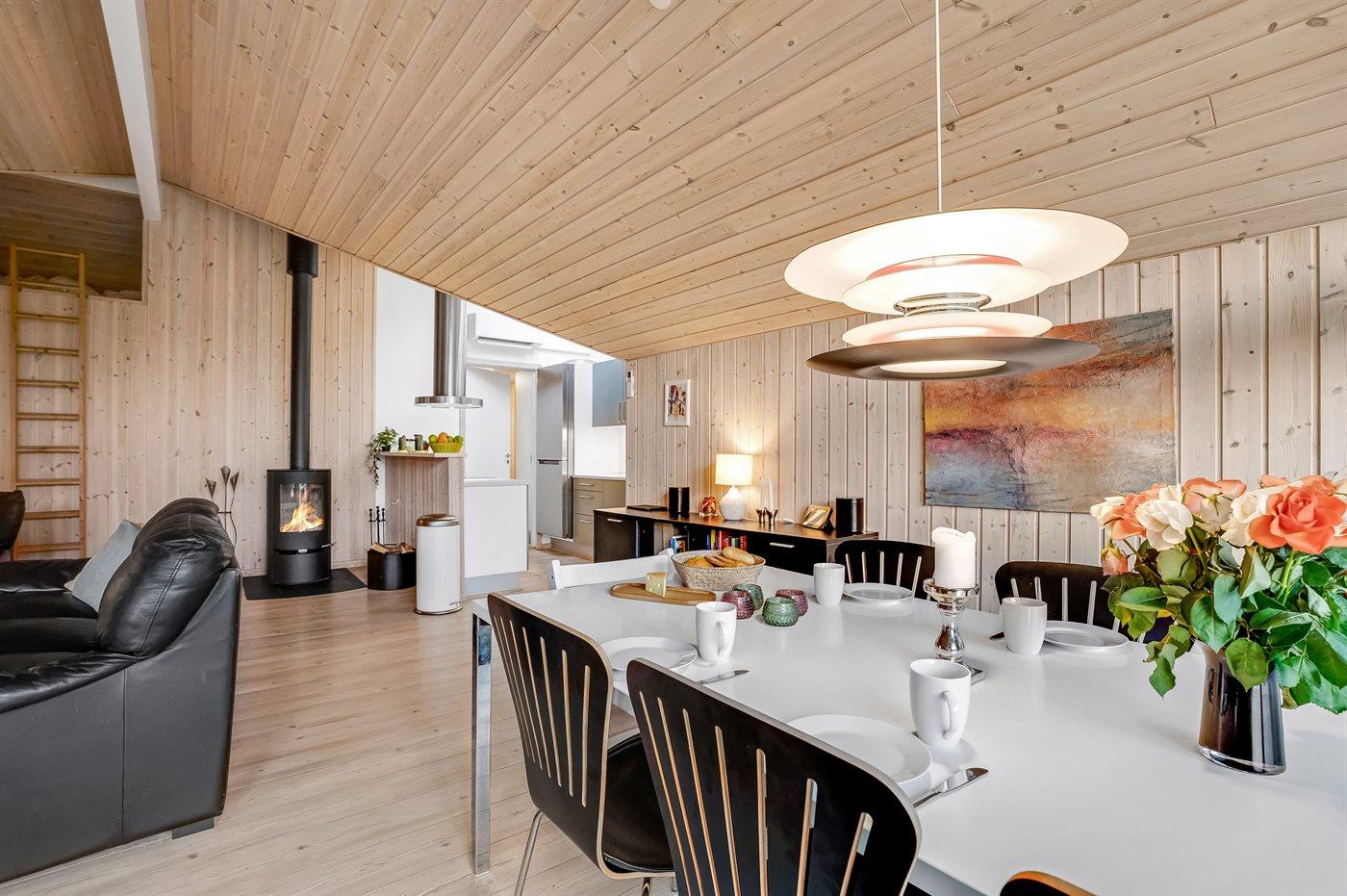 Du bydes velkommen indenfor i dette sommerhus opført i træ, der inviterer dig og familien til en afslappende ferie. Huset er lyst med en dejlig indretning og indeholder blandt andet et skønt åbent køkken, som er kombineret med et hyggeligt spisehjørne og opholdsstue. Her kan du nyde varme foran brændeovnen på de køligere årstider og efter en skøn dag i det fri, kan du slappe af i spabadet.
