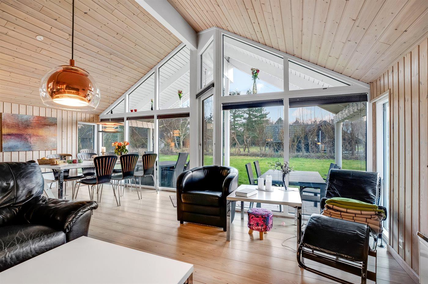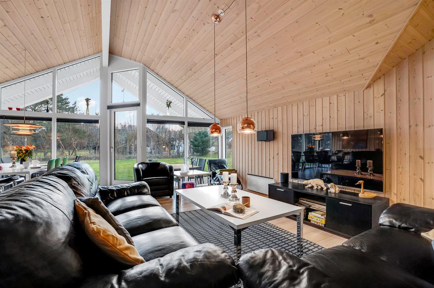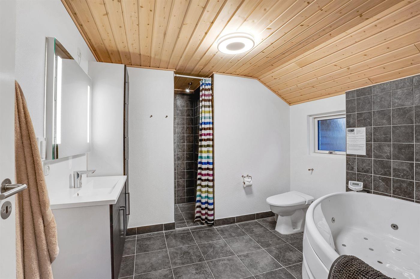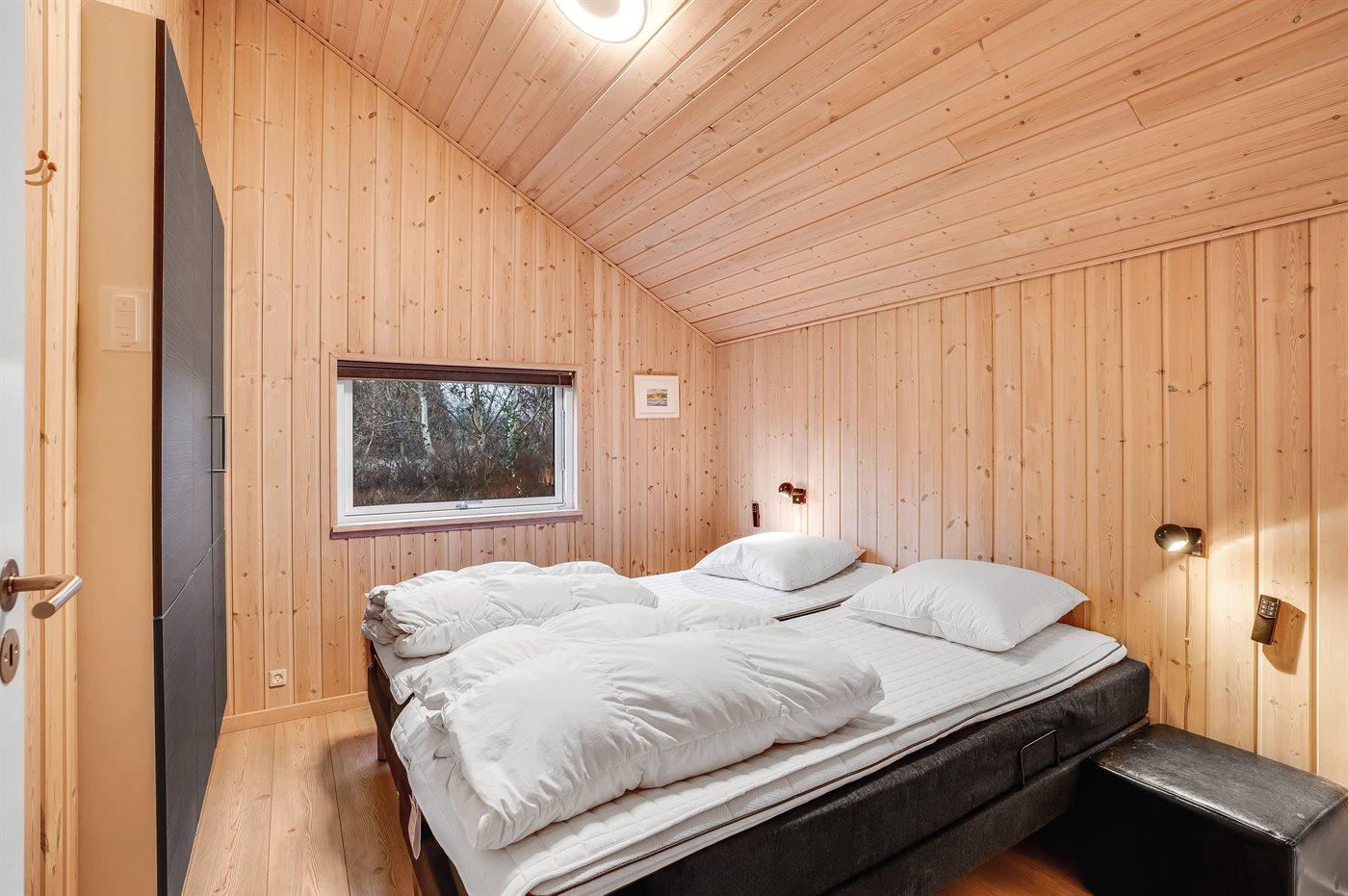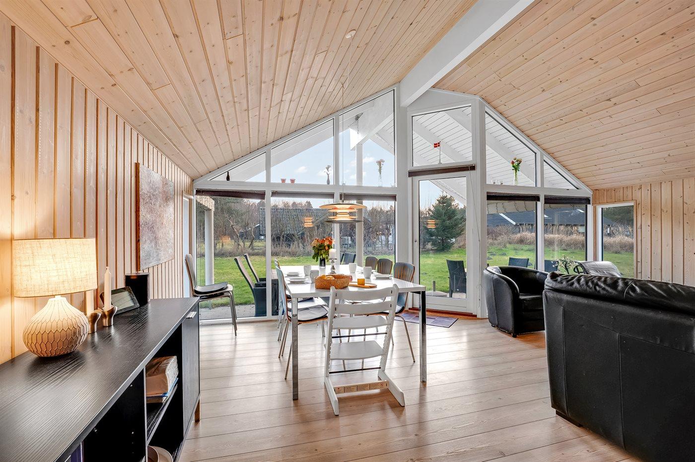 Du bydes velkommen indenfor i dette sommerhus opført i træ, der inviterer dig og familien til en afslappende ferie. Huset er lyst med en dejlig indretning og indeholder blandt andet et skønt åbent køkken, som er kombineret med et hyggeligt spisehjørne og opholdsstue. Her kan du nyde varme foran brændeovnen på de køligere årstider og efter en skøn dag i det fri, kan du slappe af i spabadet.