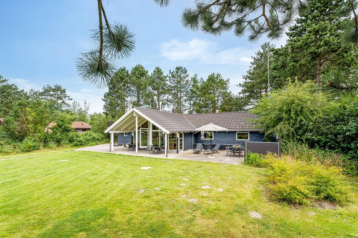 Ferieboligen er beliggende på en 1200 m² stor havegrund. Der er 600 m til havet. Nærmeste forretning er beliggende i en afstand af 900 m. Til ferieboligen hører åbent terrasseareal. Desuden er der overdækket terrasse. Gynge. Sandkasse. Der er 2 Weber kuglegrill til rådighed. Parkering ved ferieboligen.