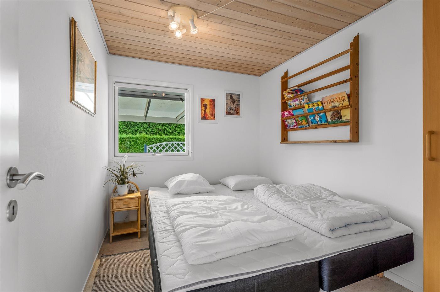 Der er i alt 2 soveværelser. Sovepladserne fordeler sig på: 4 sovepladser i dobbeltsenge. 2 sovepladser i sovesofa (dobbelt). 2 af disse sovepladser befinder sig i stuen. Derudover er der 1 stk. barneseng.
