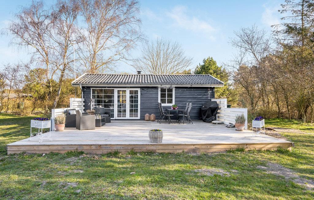 Fra stuen har I udgang til den fantastiske, store terrasse, som er udstyret med havemøbler og grill til hyggelige grillaftener. Her kan I sidde og sole jer, nyde feriens måltider eller læse en god bog, mens børnene løber rundt og leger i haven.