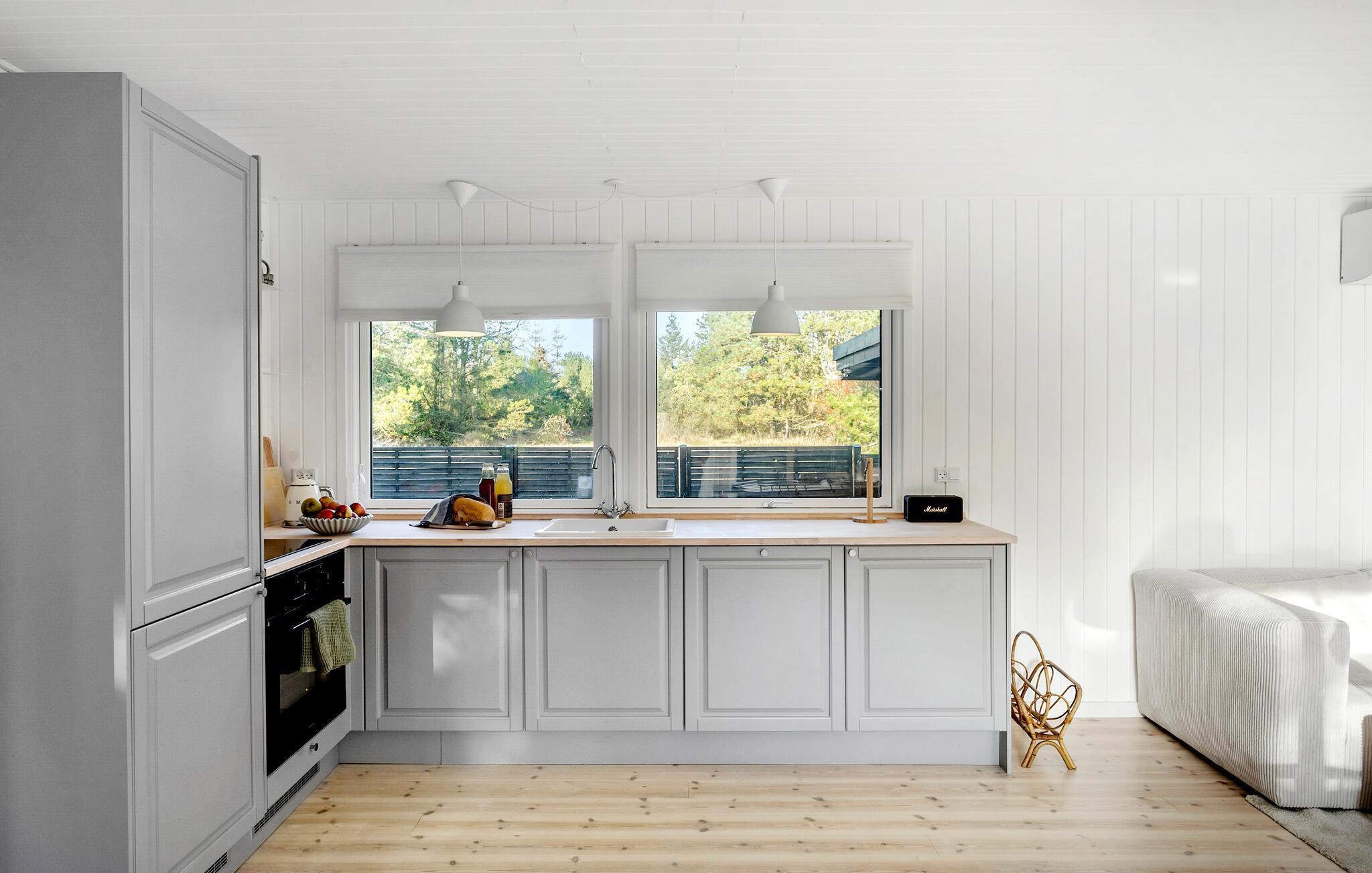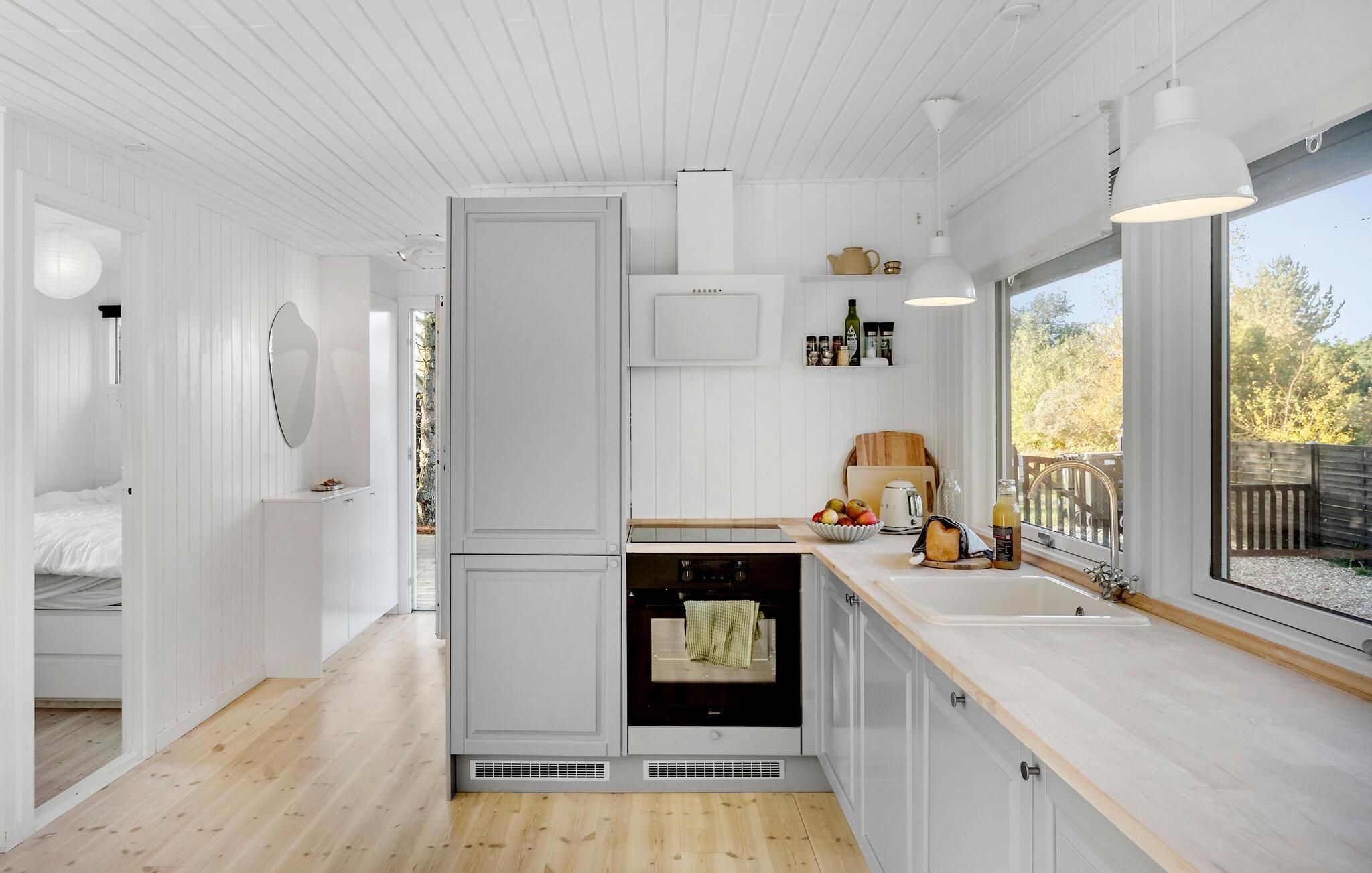 Huset har alt, hvad I behøver til et komfortabelt ophold. Den åbne stue er elegant indrettet og har store vinduer til udearealet. Find jer til rette i de bløde møbler og se en god film. Det veludstyrede køkken lægger op til hyggestunder med fælles madlavning.