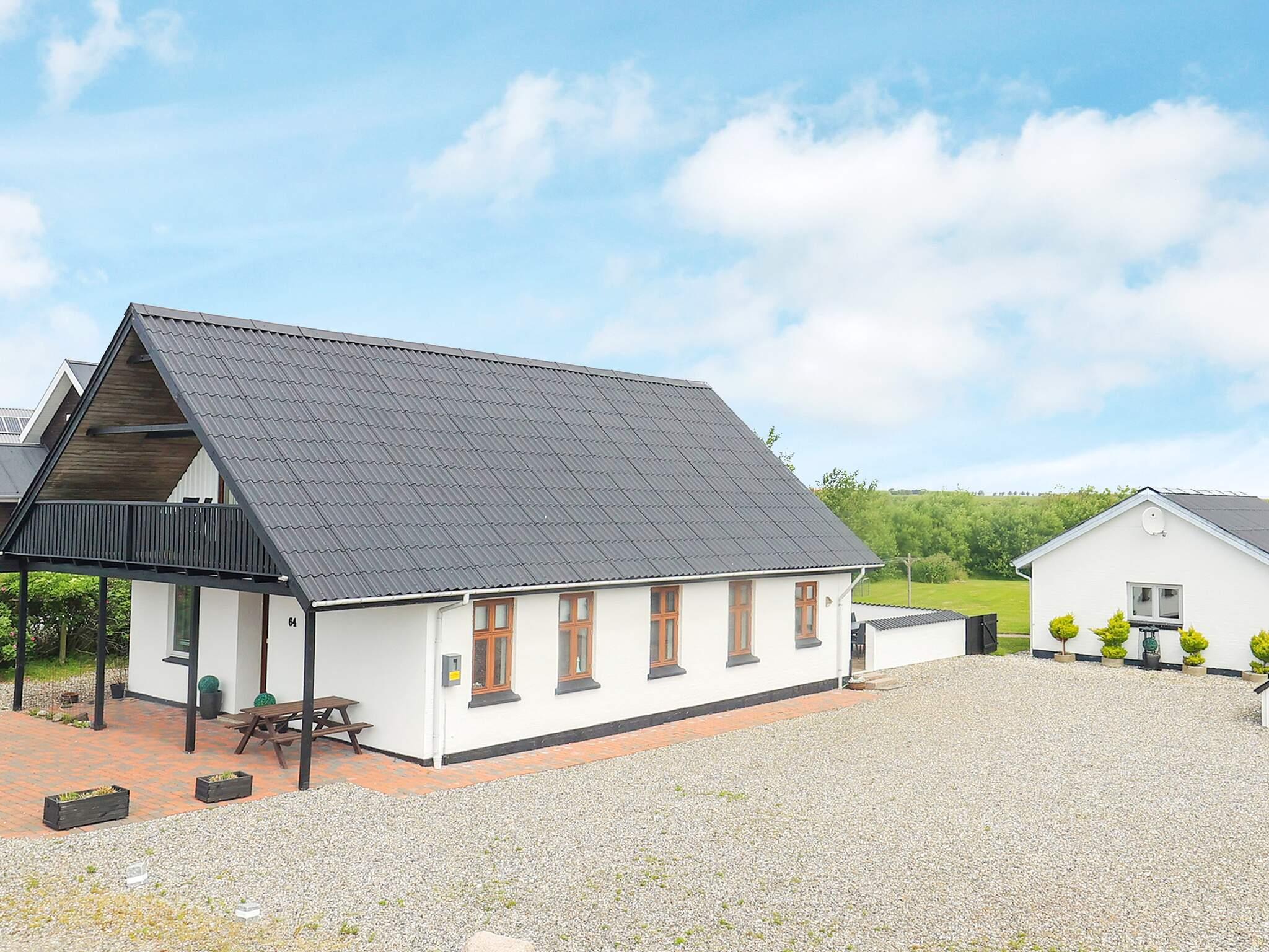 Huset har en åben terrasse med komfortable havemøbler og en gasgrill, hvor I kan nyde aftensmaden, mens solen går ned over fjorden. Der er også en udendørs bruser med både koldt og varmt vand, så du nemt kan skylle af efter en dukkert i de blå bølger.