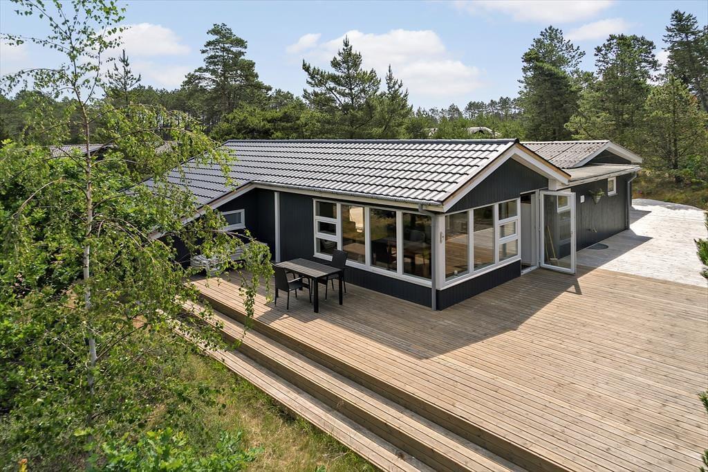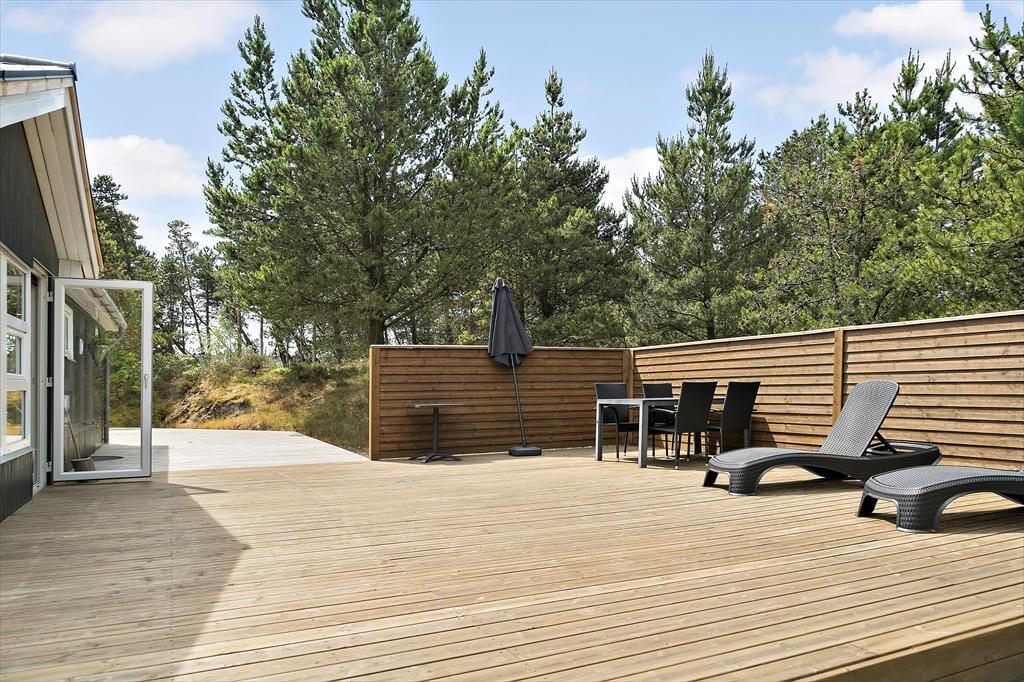 Et af de vellykkede renoveringsprojekter foregik ude i det fri i 2019, for her blev der bygget en ny, stor terrasse til huset. Den hævede træterrasse er ikke bare stor, men også solrig, og der er havemøbler, grill og liggestole til rådighed, så du virkelig kan slappe af og nyde udelivet. På den 2500 m² store naturgrund er der desuden både gynger og sandkasse til de yngste familiemedlemmer.
