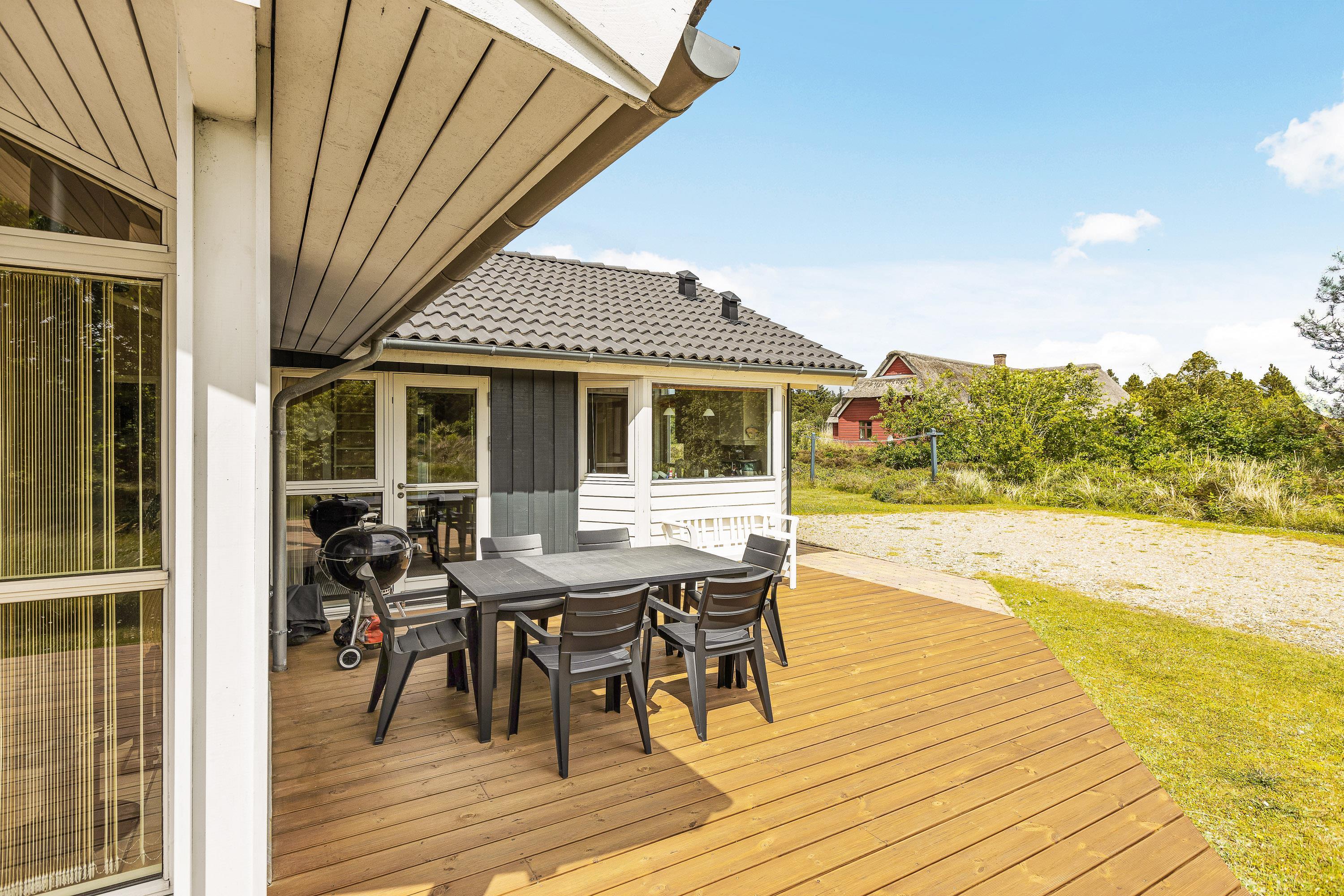 Sommerhuset ligger på en dejlig afskærmet naturgrund med to terrasser både en åben og en overdækket. De perfekte betingelser for at slikke sol eller hygge på lange sommeraftener med grill. Børnene behøver ikke kede sig, de kan tumle i haven, imens de voksne slapper af, og nyder tilværelsen til lyden af fuglesang.