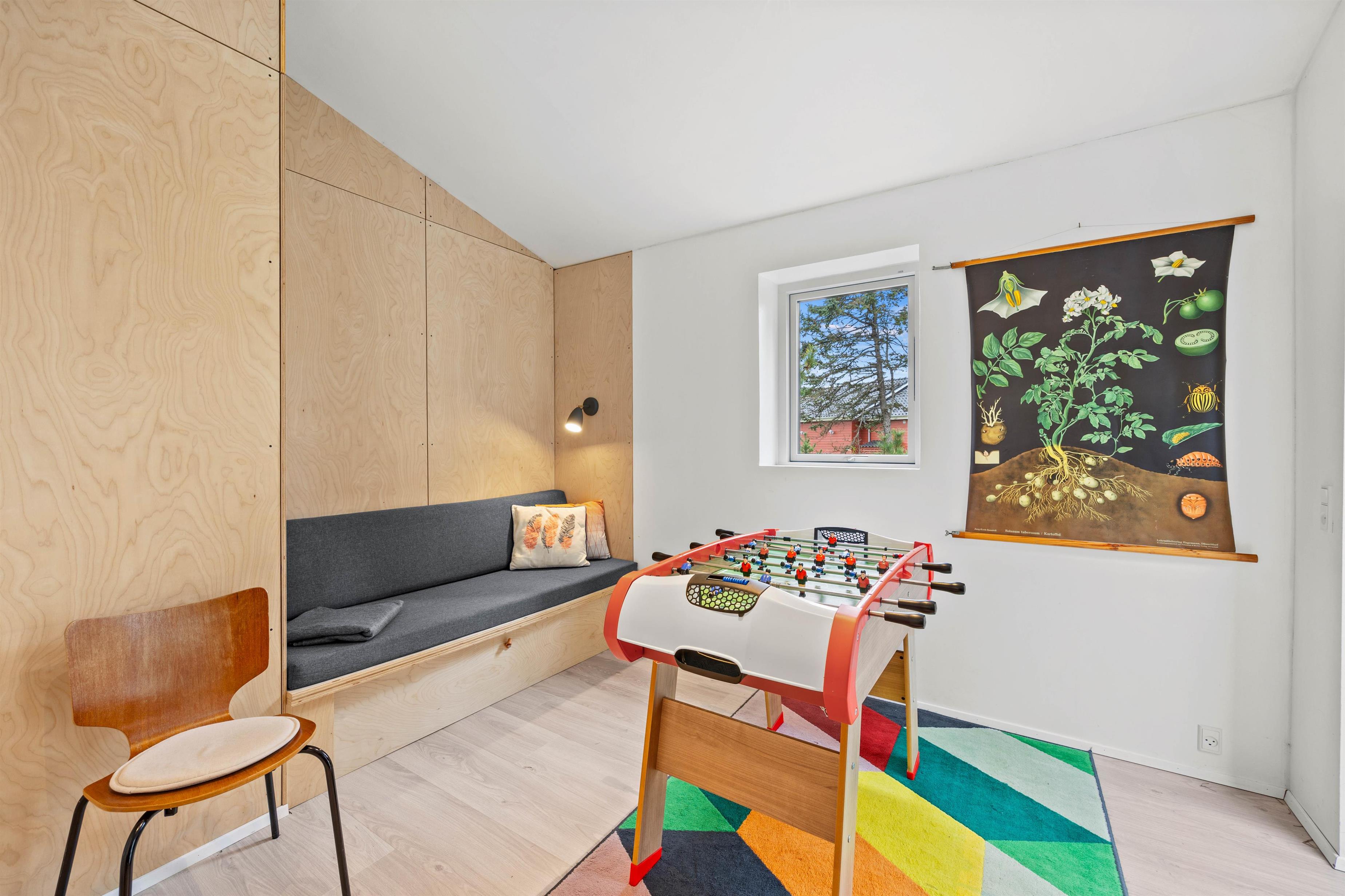 Skønt er her 2 fine badeværelser med gulvvarme, så I hverken behøver stå i kø eller fryse tæerne. De 6 sovepladser fordeler sig på 3 gode soveværelser, hvoraf et er perfekt til børnene med køjesengen. Det samme gælder sommerhusets fine anneks, hvor I finder bordfodboldbordet samt vaskemaskine og tørretumbler, her finder i også mikroovnen.