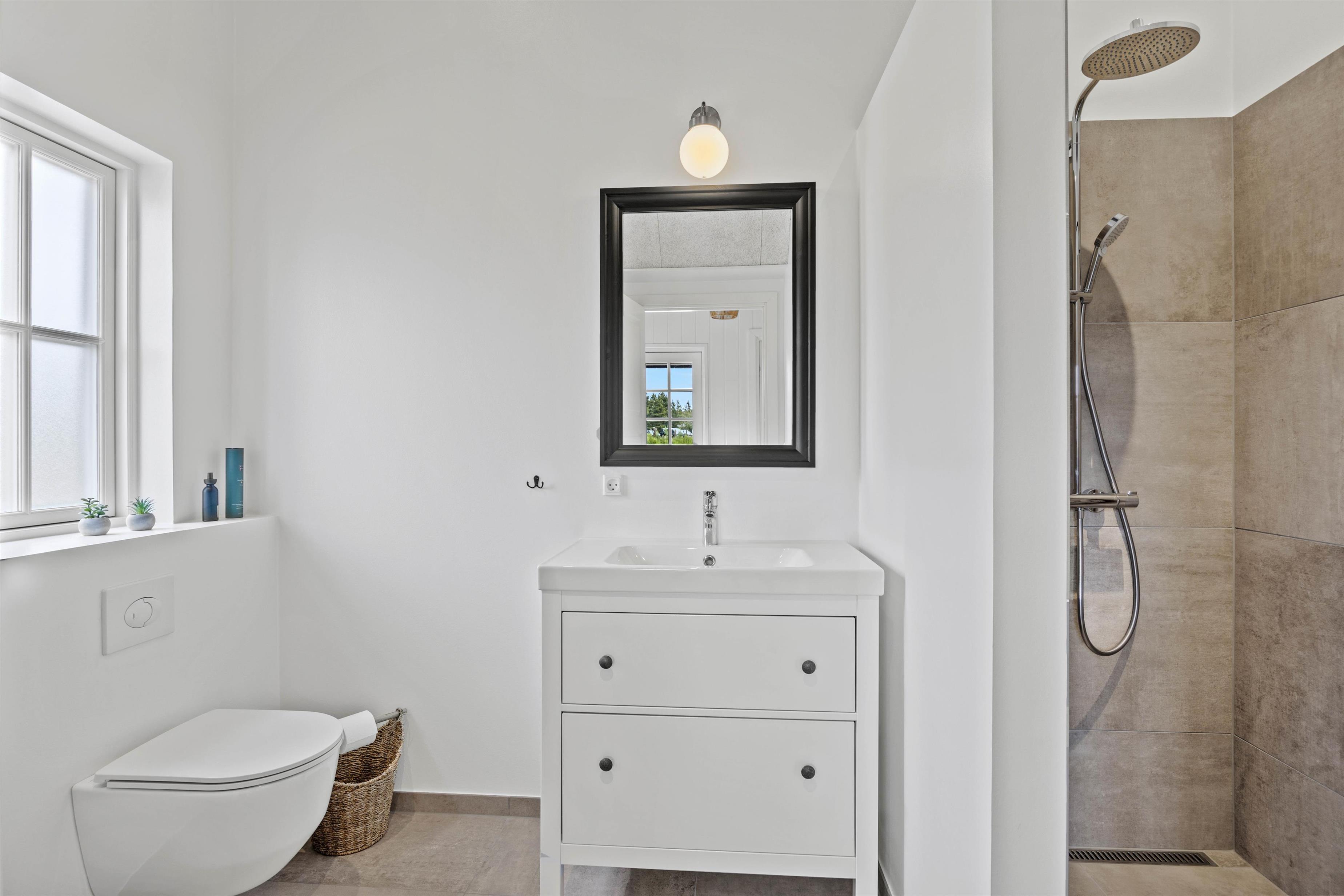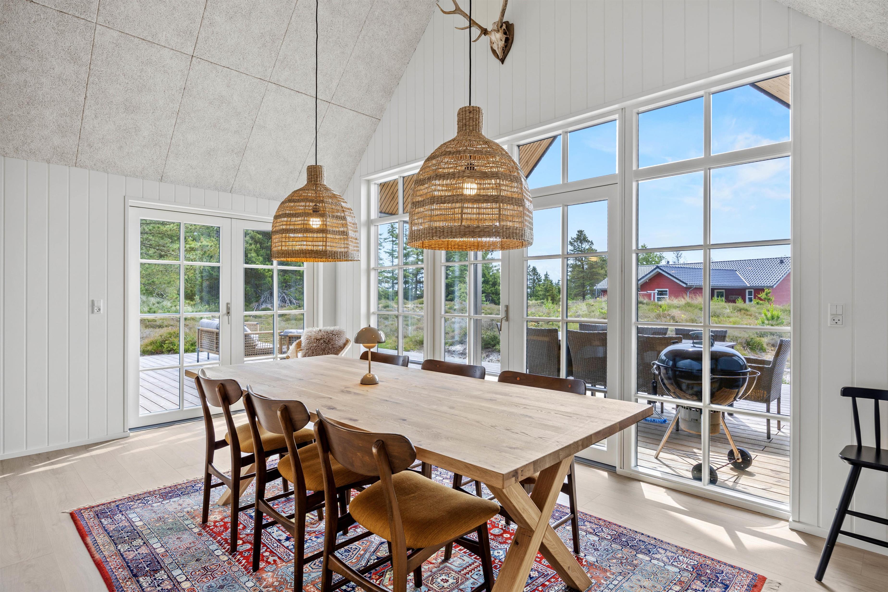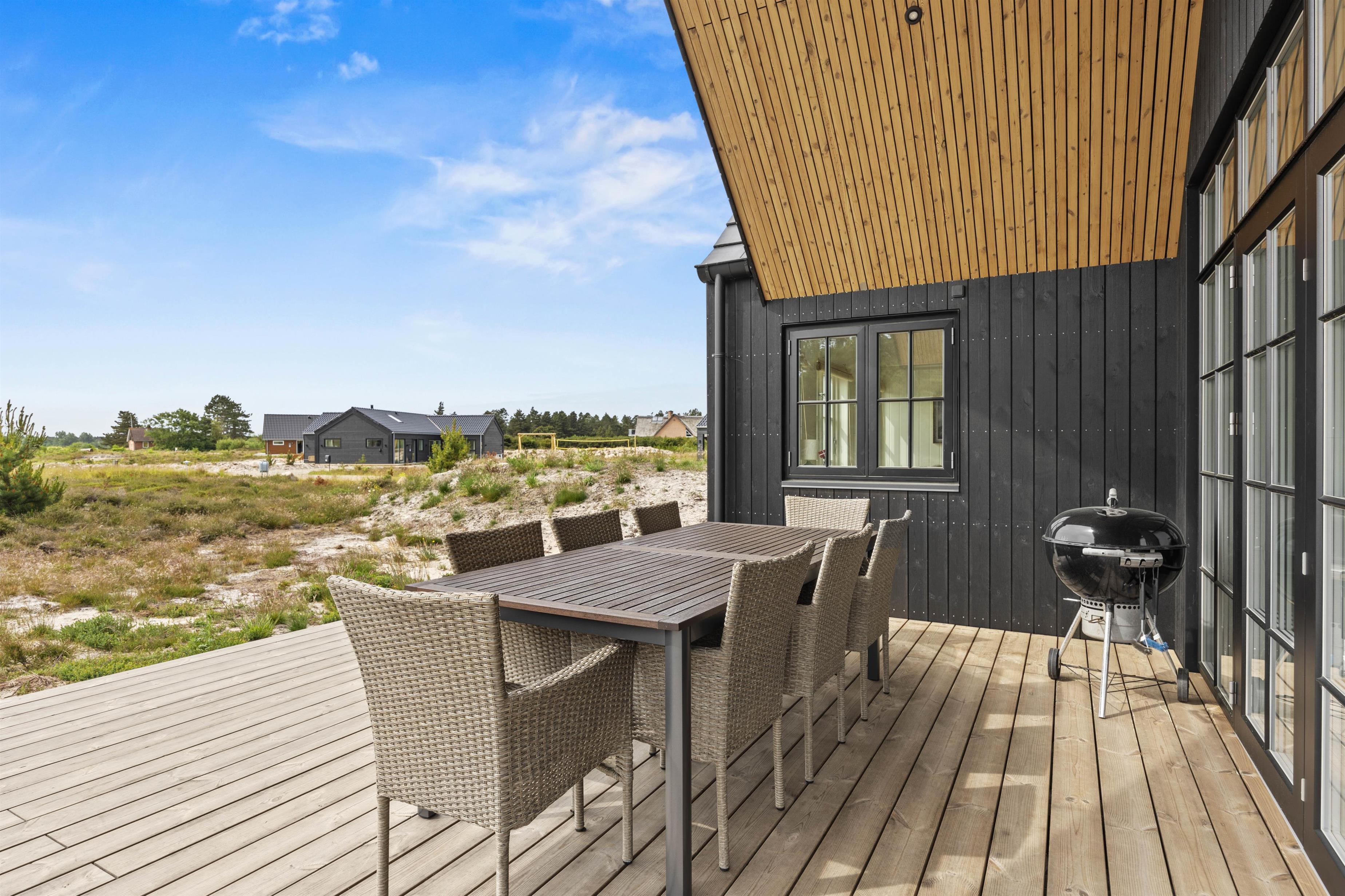 Glæd jer til mange moderne faciliteter, der gør jeres ophold uforglemmeligt. Et fuldt udstyret køkken med opvaskemaskine gør det nemt at tilberede lækre måltider i feriehuset. Efterfølgende kan I nyde tiden sammen på den åbne eller overdækkede terrasse. Grill og havemøbler indbyder til hyggelige aftener med dem, I holder af. Højdepunkterne ved huset er de rolige omgivelser – omgivet af skov og beliggende på en dejlig naturgrund med klitter. Børnene kan lege trygt, mens I nyder den friske havluft.