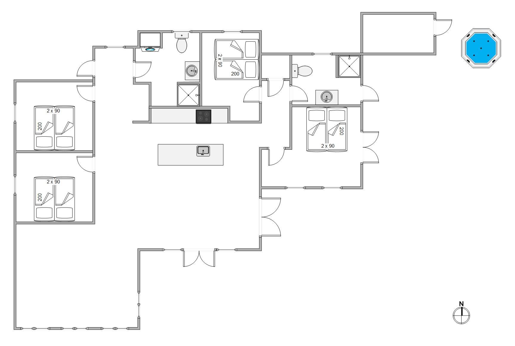 Dette sommerhus, opført i 2024 i Kromose på Rømø, forener moderne komfort med ultimativ afslapning. Med hele 132 m² boligareal er der plads til op til otte personer. De fire soveværelser med i alt otte enkeltsenge giver rigelig plads til både familier og vennegrupper. To badeværelser med gulvvarme sørger for en altid behagelig og varm atmosfære. Den udendørs spa giver jer luksuriøse, afslappende øjeblikke. Nyd stjernehimlen fra spaen – næsten ingen steder er kombinationen af måneskin og stjerneklar himmel så betagende som på Rømø. Takket være luft-til-vand-varmepumpen er huset også dejligt varmt på kølige dage.