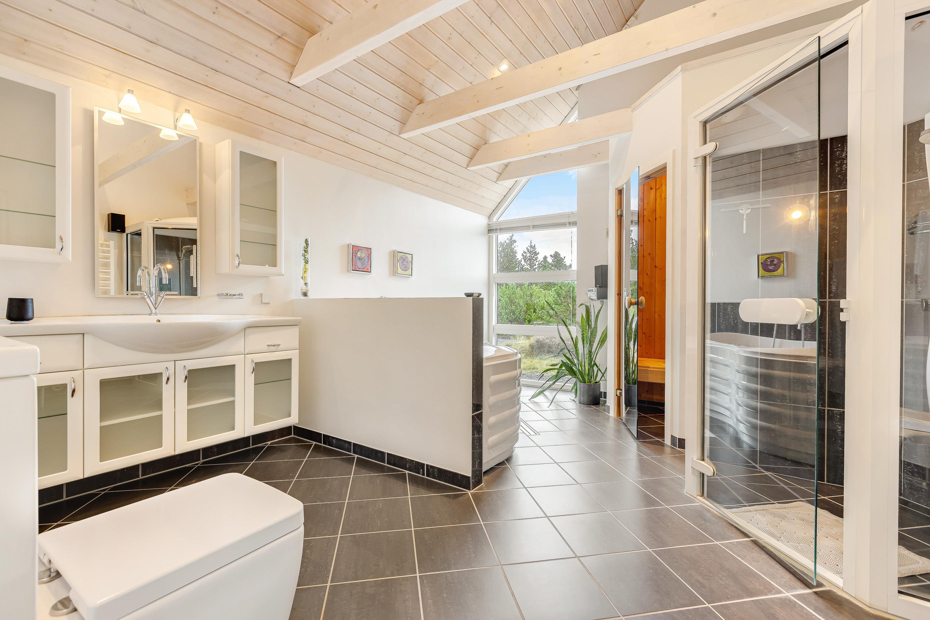 Med 3 soveværelser, som alle er indrettet med dobbeltsenge, TV og DVD afspiller, byder feriehuset velkommen til 6 feriegæster. På over 160m² er der plads til mange timers sjov, aflapning og samvær. Efter en lang dag ved stranden, kan I varme kroppen op igen i spaen og nyde den afslappende varme fra saunaen efterfølgende. Med de 2 badeværelser opstår der ikke kø om morgenen.