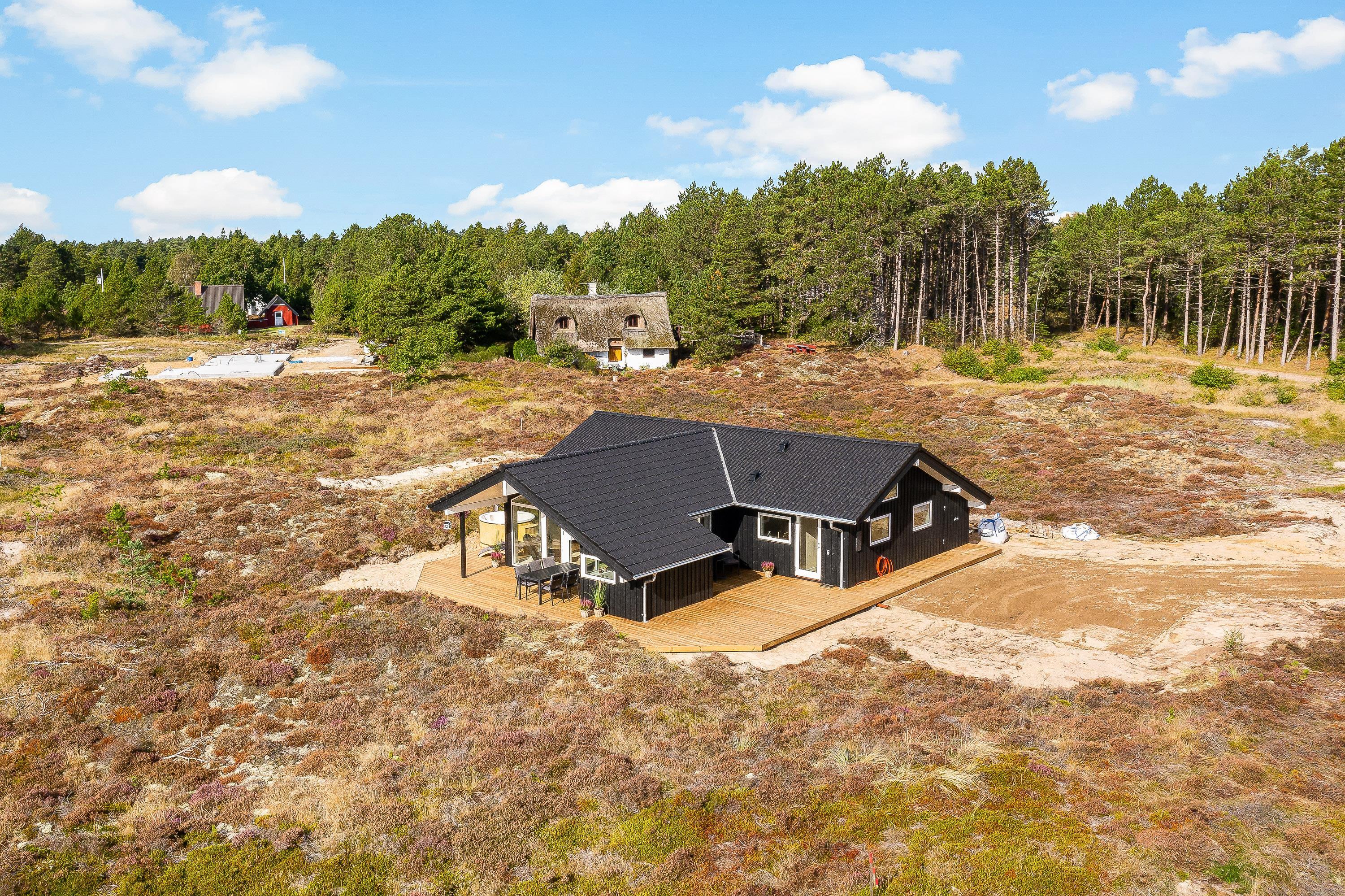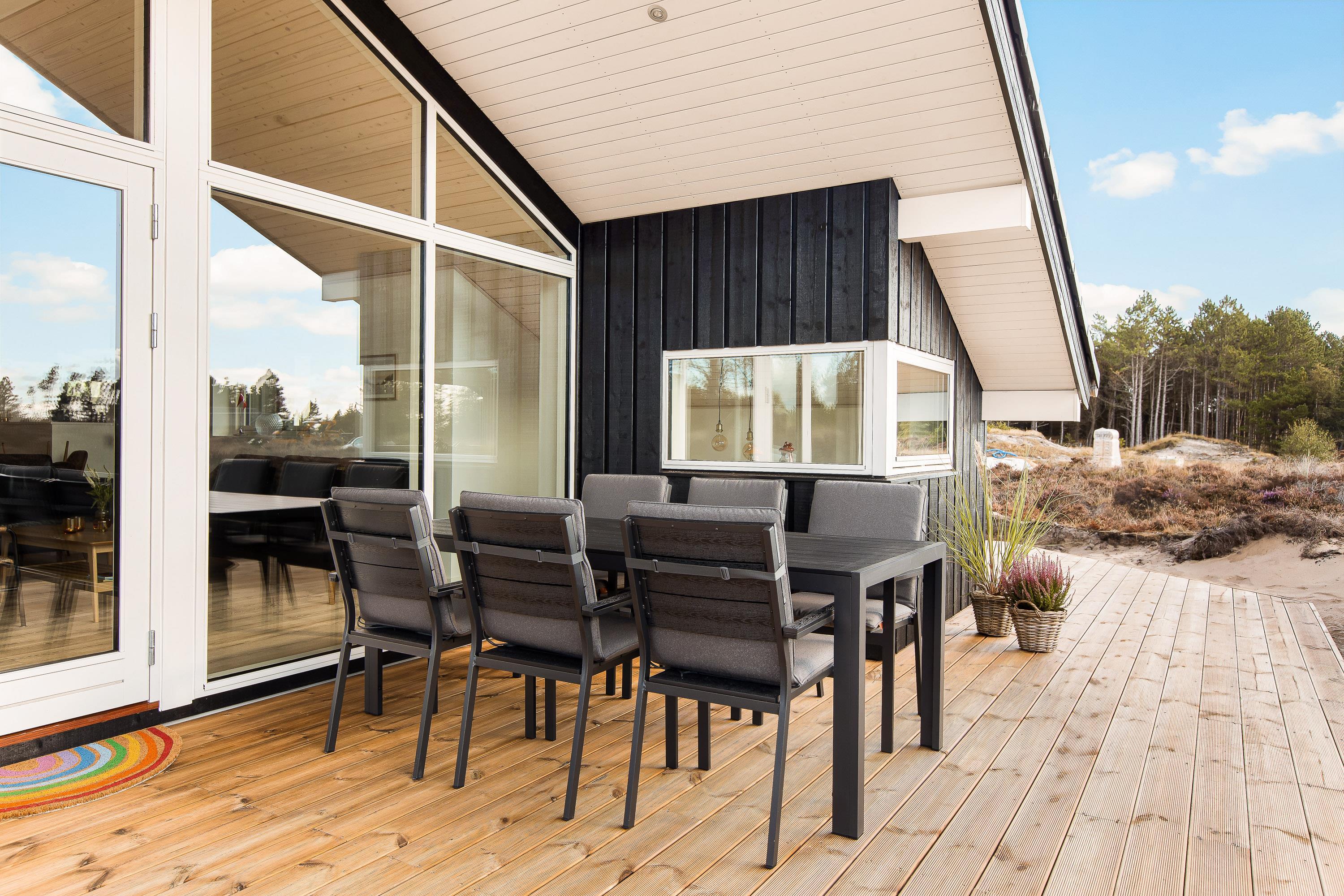 Sommerhuset på Chresten Krommes Vej 6 karakteriseres også ved den store naturgrund med afskærmet og delvist overdækket terrasse. Her kan du finde en skyggefuld plet, eller nyde middagssolen på liggestolen - imens kan børnene bygge sandslotte i sandkassen eller lege på gyngerne.