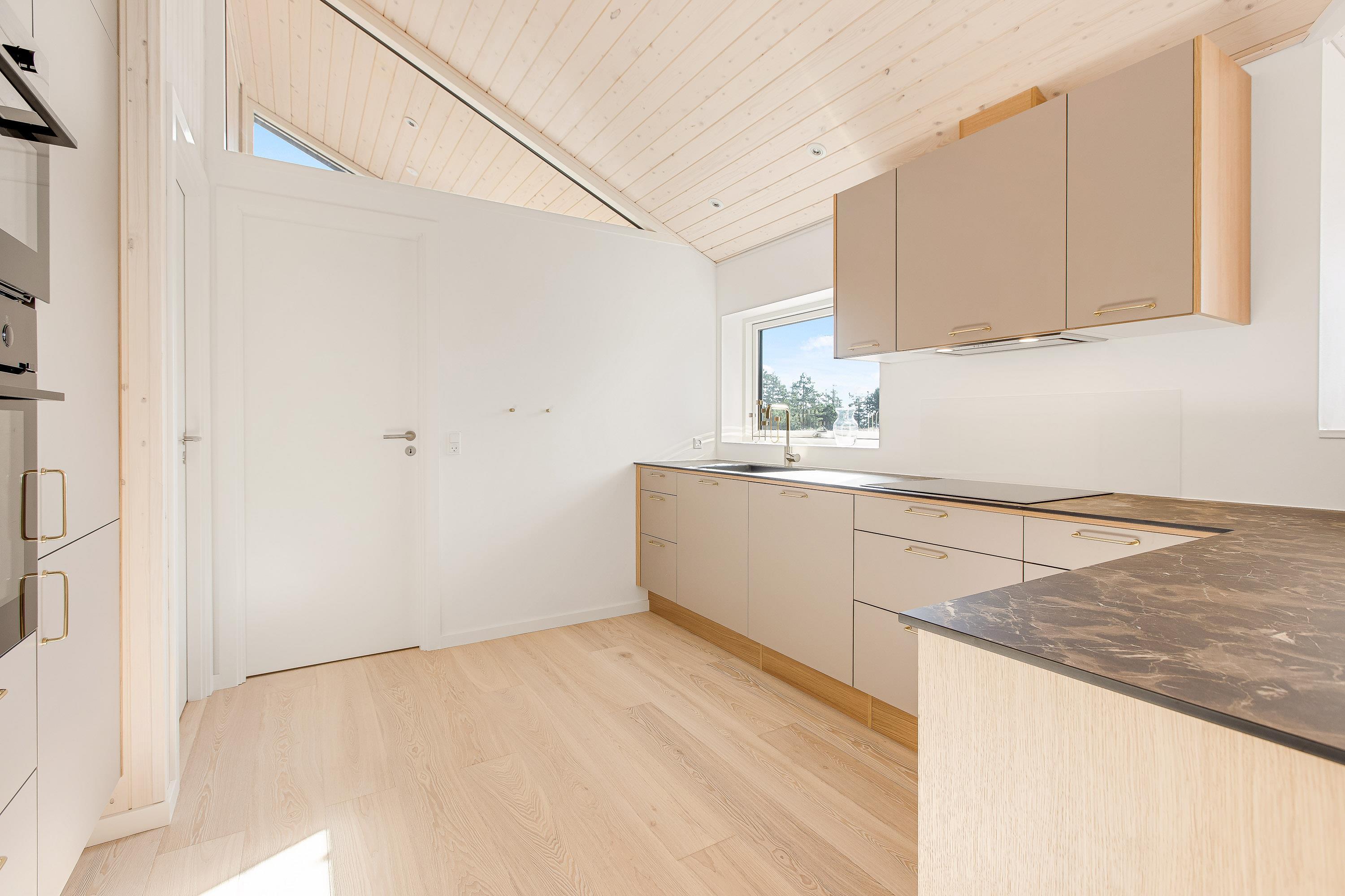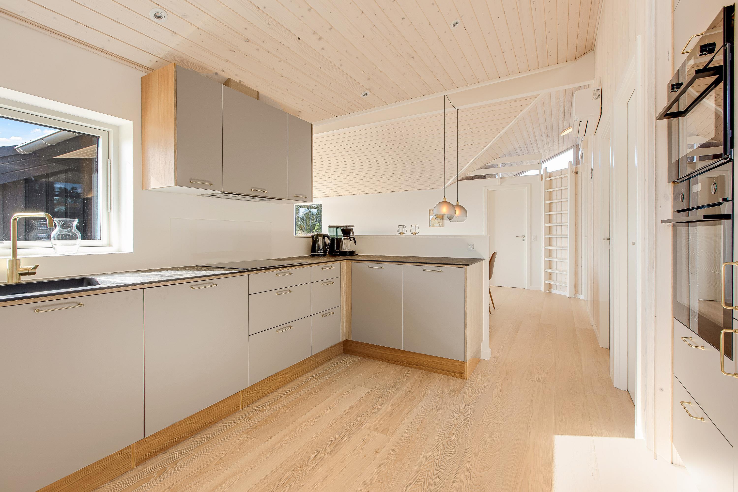 I dette sommerhus kan du tilbringe mange glade timer med hele familien, lave mad sammen, arrangere brætspilsaftener eller en hyggelig filmaften med børnene. I køkkenet vil lystfiskeren - udover de almindelige faciliteter som induktionskogeplader, opvaskemaskine, ovn og mikroovn - især blive glad for den separate 60 liters fryser. Der er en energibesparende varmepumpe, samt trægulve i opholds- og soverum.