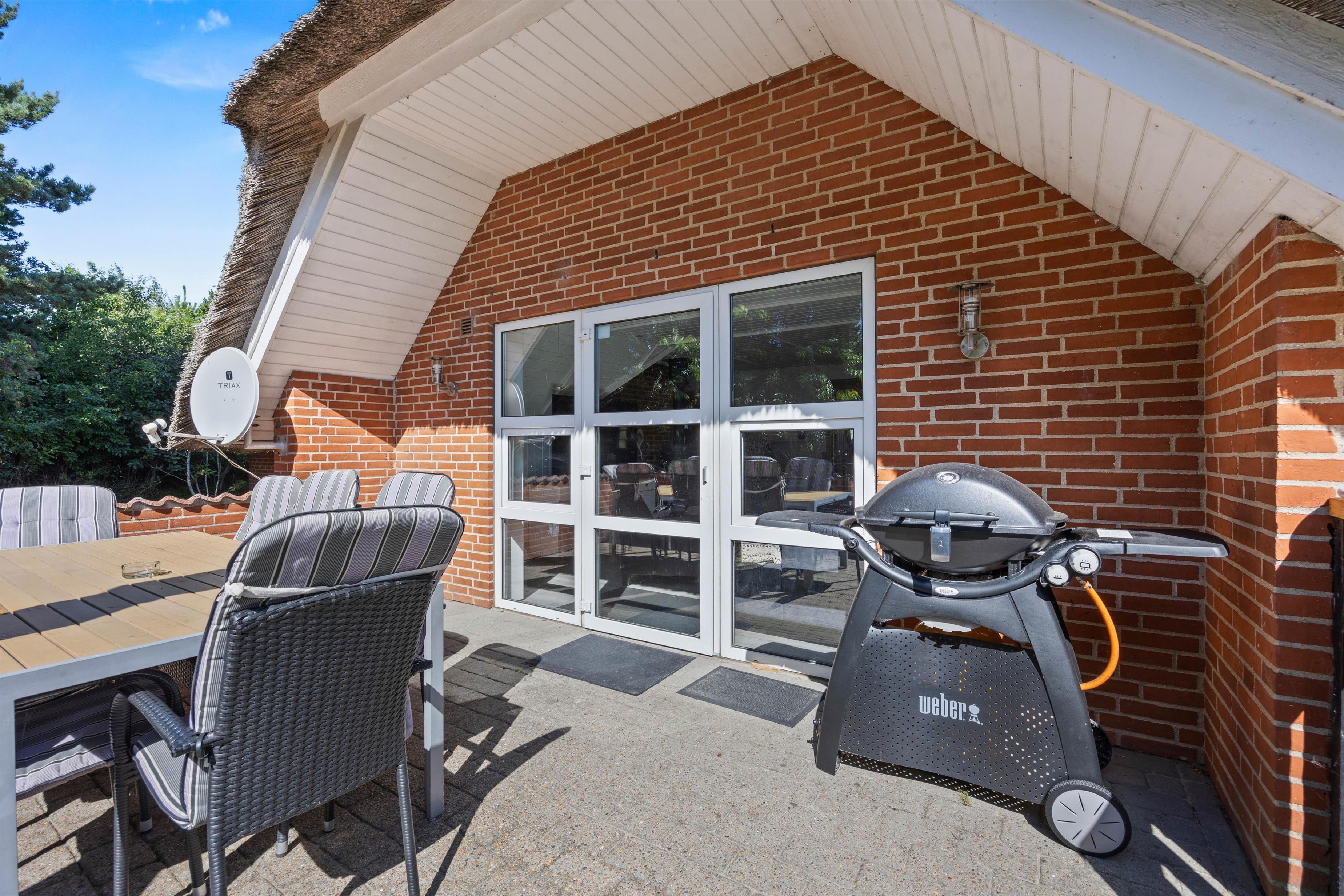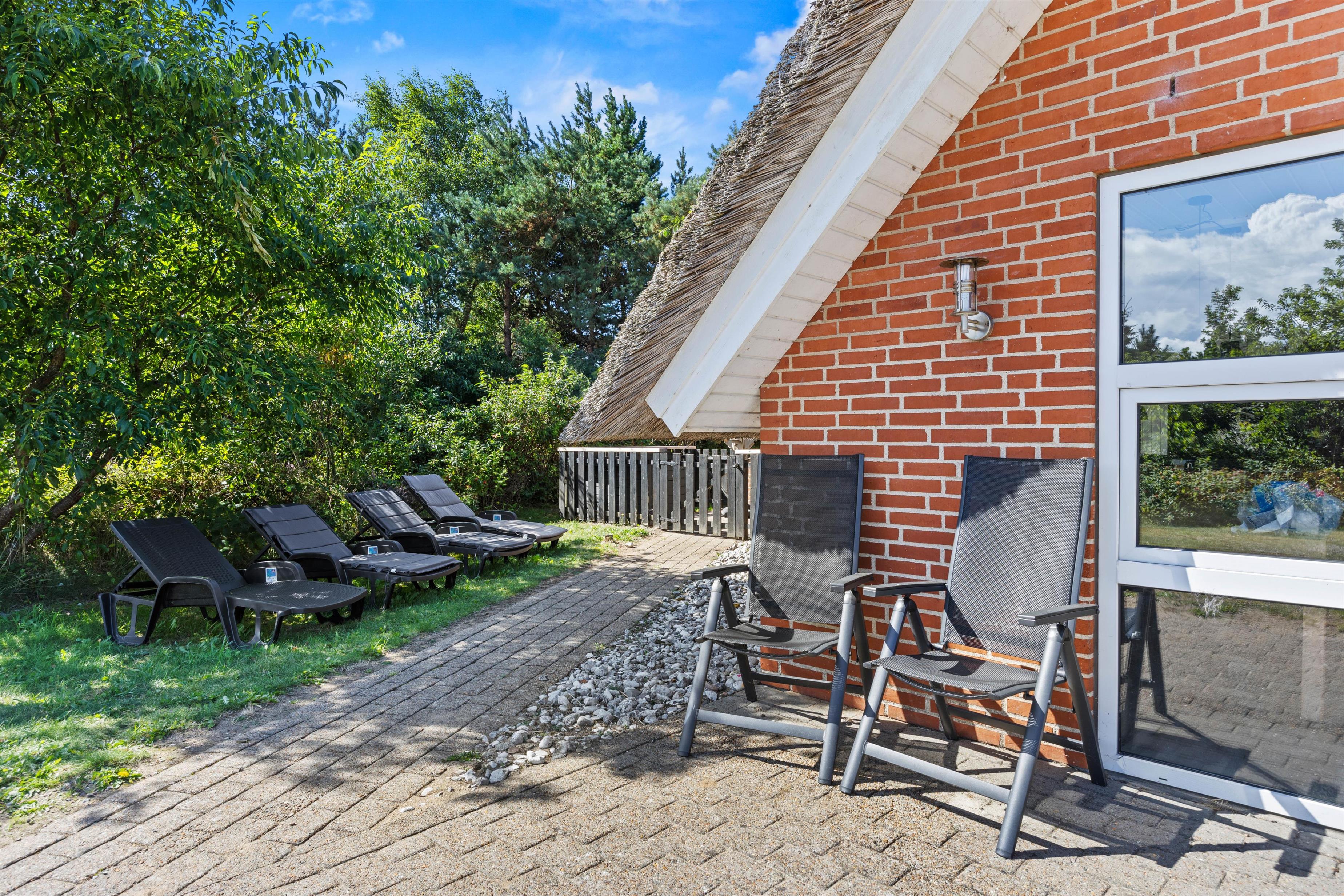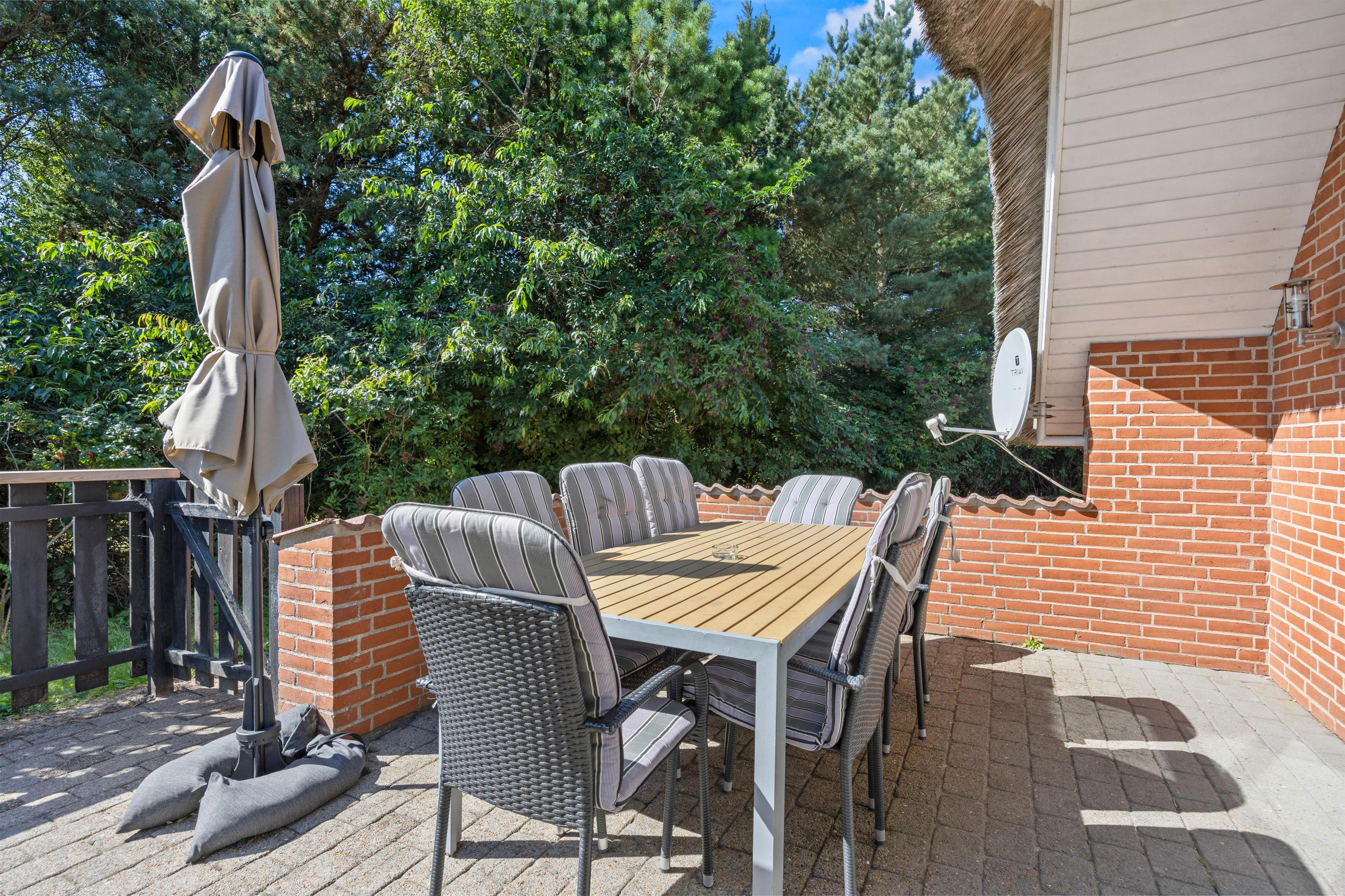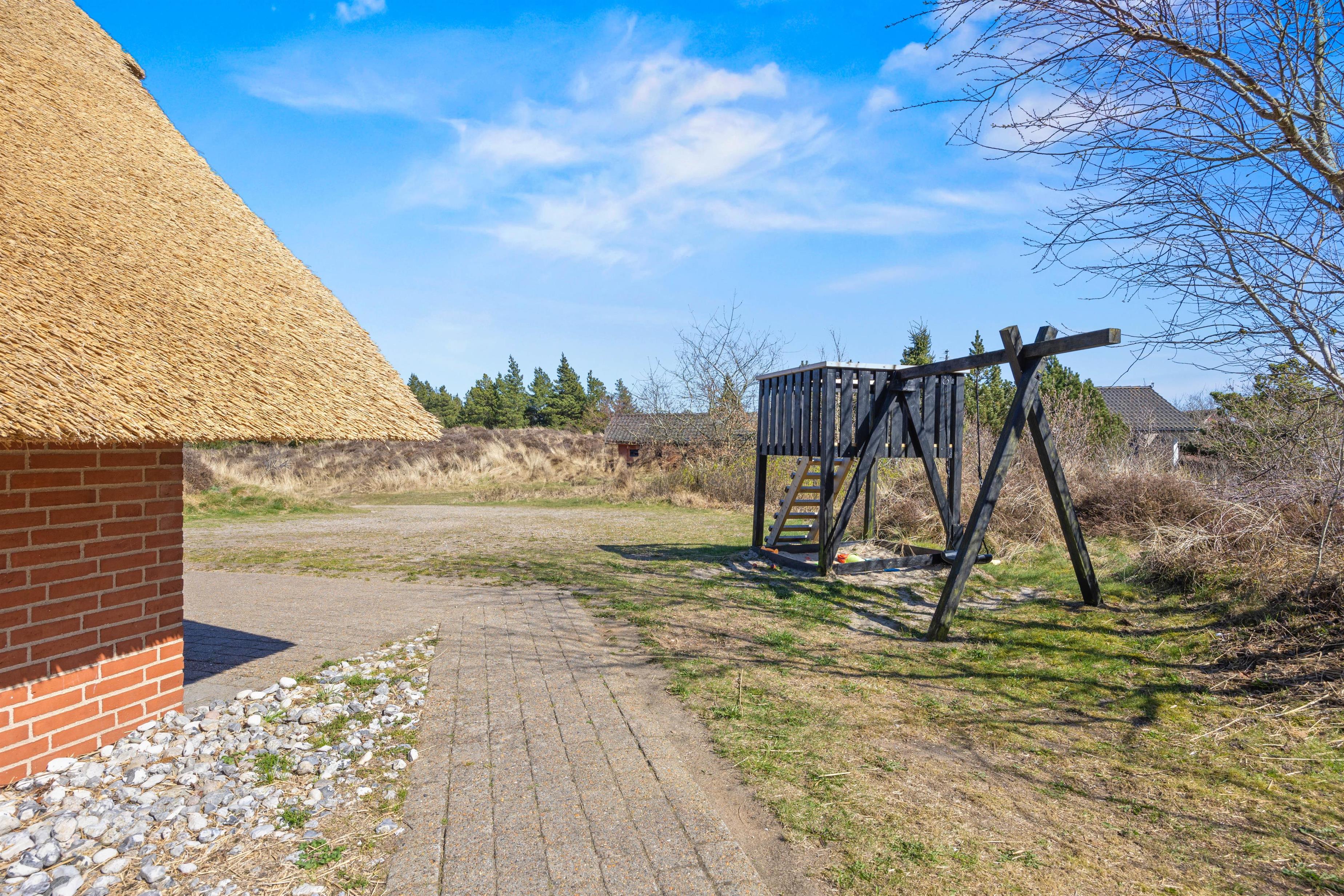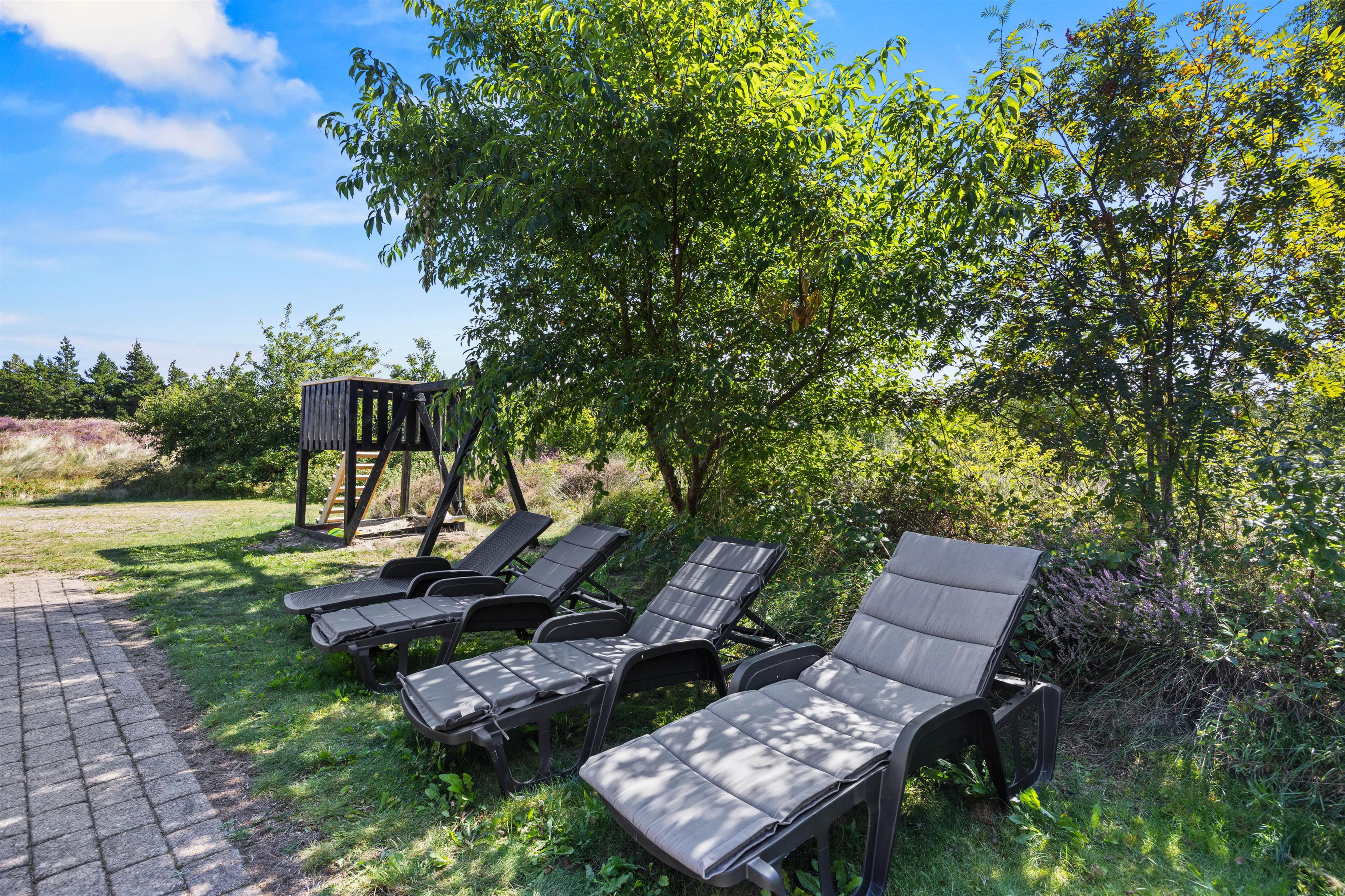 Sommerhusets terrasse med havemøbler og solsenge samt parasol inviterer til mange hyggelige solskinstimer i naturen, og om aftenen kan I nyde roen ved Vadehavet med mad fra grillen. Der er en indhegnet terrasse, som gør det nemt at være ud med de mindste eller de firebende gæster. De små gæster kan boltre sig på legetårnet med gynger og sandkasse.