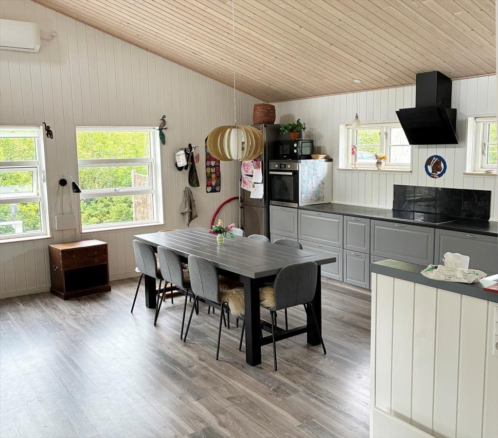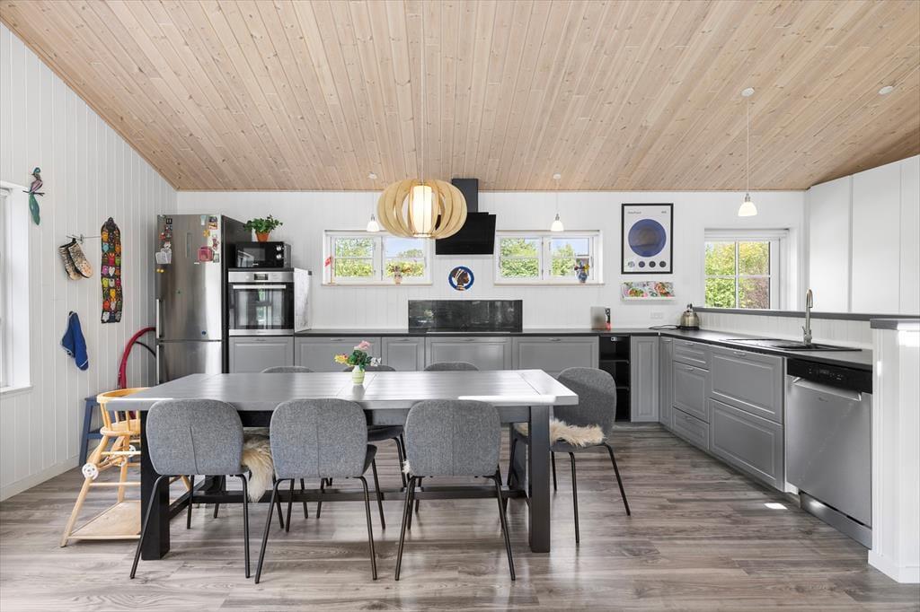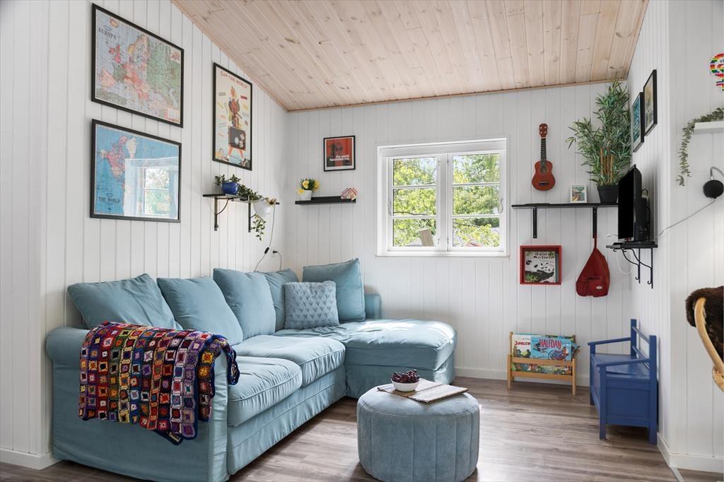 Sommerhuset er indrettet med dejlig stue. Her kan du fordybe dig i en god bog - eller hvad med et slag kort og en latté? I forbindelse med stuen er der et åbent køkken, hvor I kan hjælpes om at tilberede frokosten. Der er et dejligt badeværelse med brus og to gode soveværelser; et med dobbeltseng og et med dobbelt underkøje samt overkøje. Derudover er annekset indrettet med en dobbeltseng og en dobbelt sovesofa.