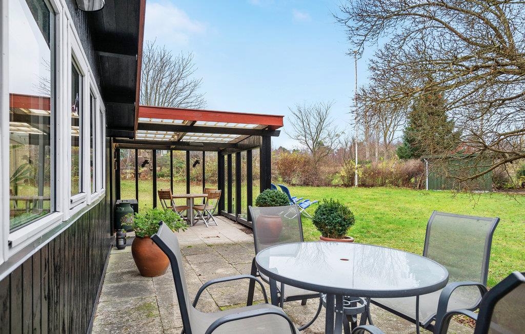 Udenfor kan du nyde den friske luft på den åbne eller overdækkede terrasse med havemøbler og grill og nyde dejlige timer i solen, mens dine kæledyr kan løbe rundt på den store grund.