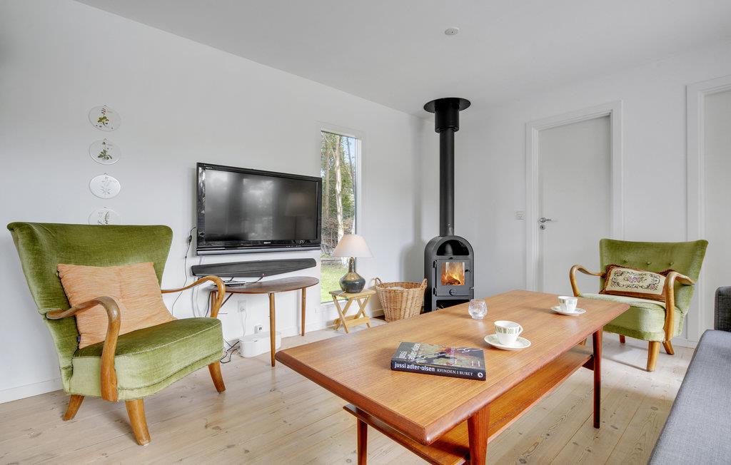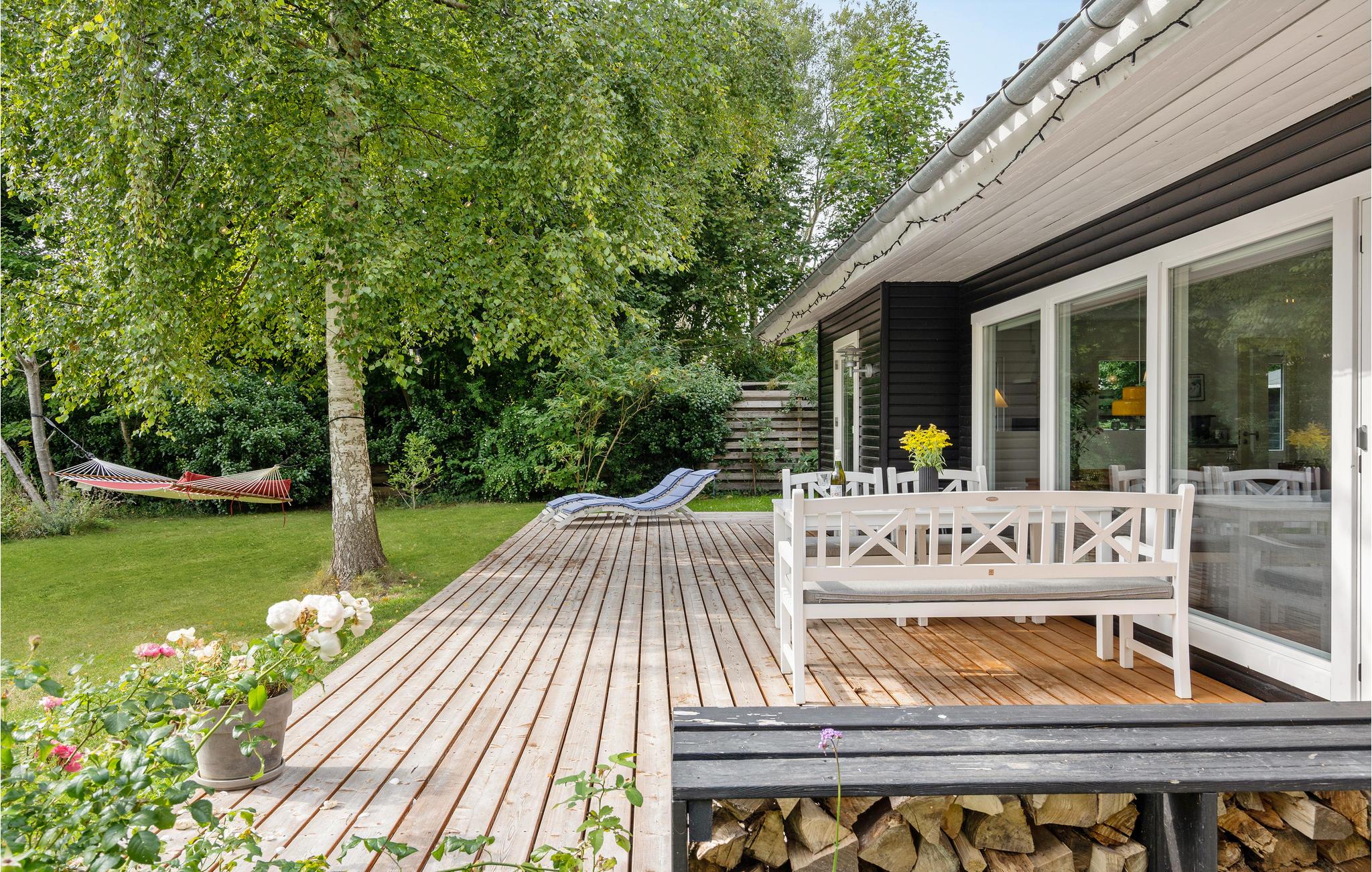 Hyggeligt feriehus i Kyndeløse Nordmark med terrasse, have og tæt på strand og fjord.