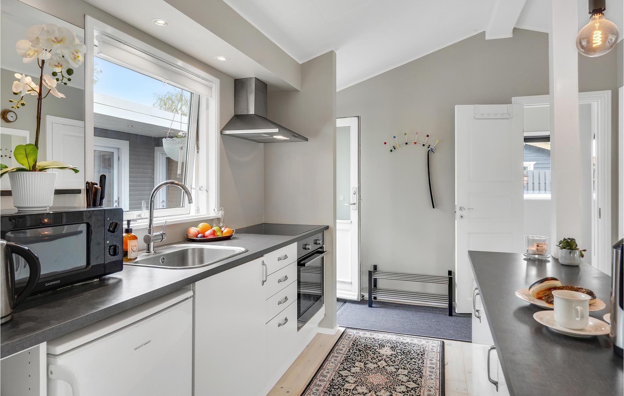 Lyst, moderne sommerhus med pilleovn og egen have, kun 600 meter fra fjorden.