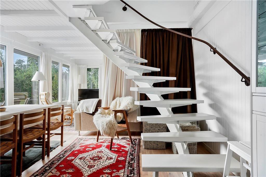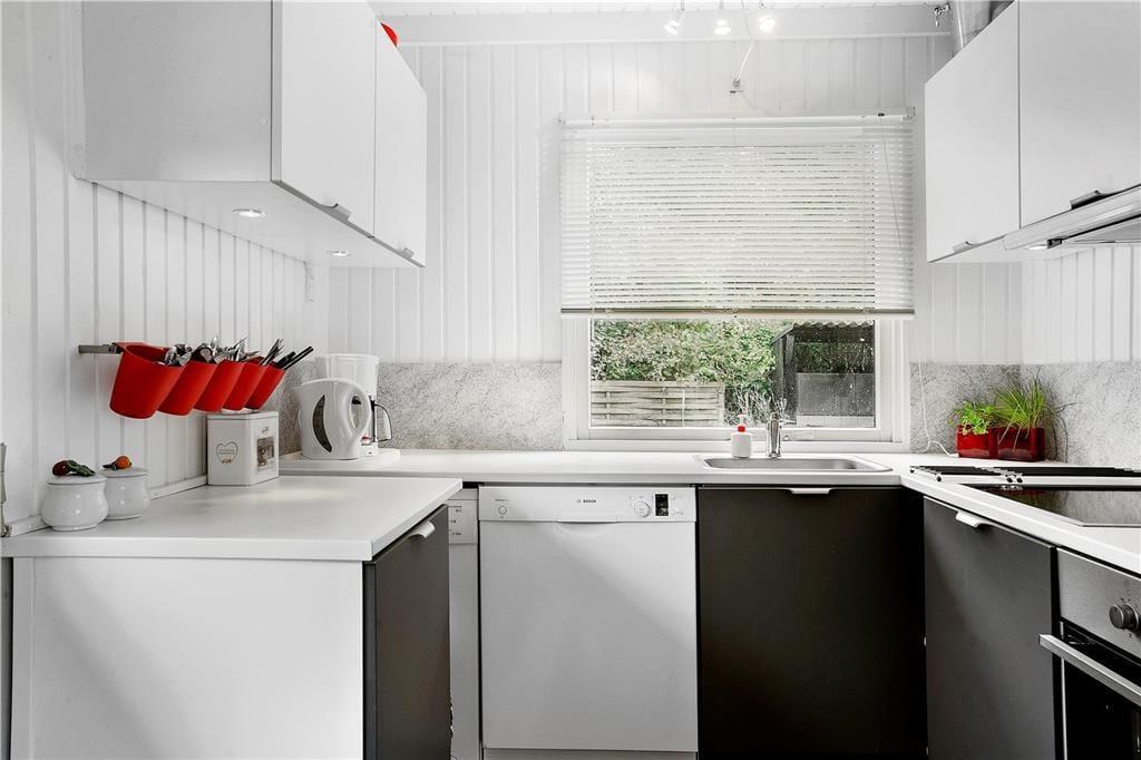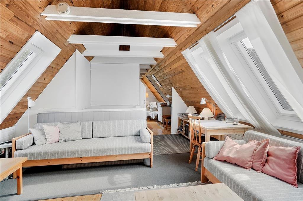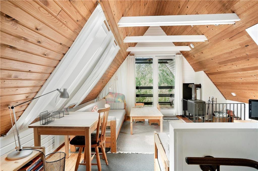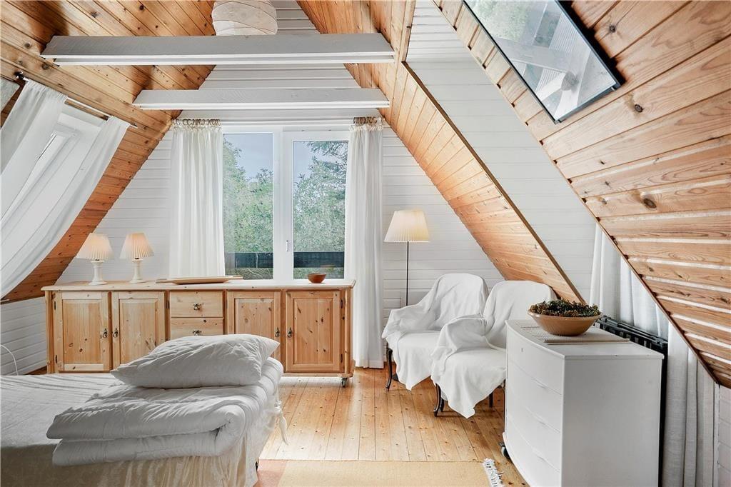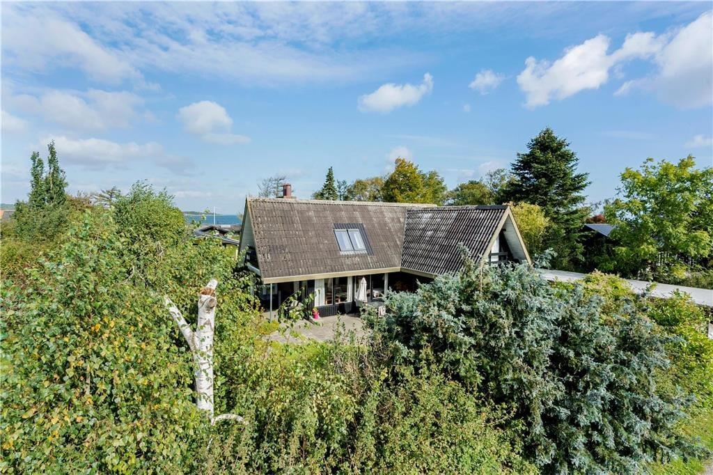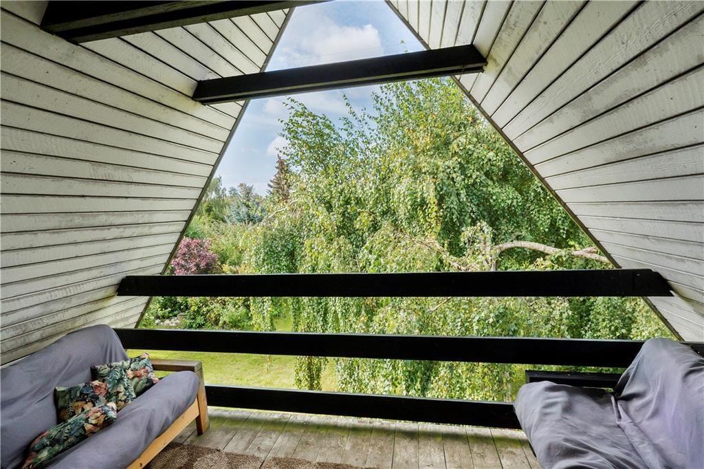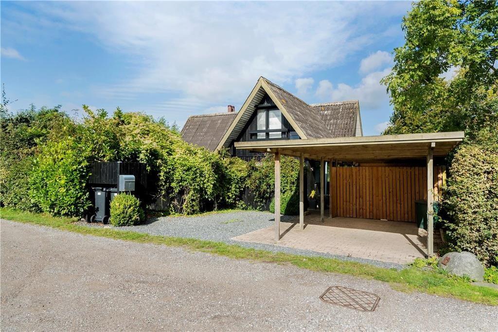 Udenfor venter en rummelig have med et strejf af naturlig vildskab, der skaber en afslappet og frodig atmosfære omkring huset. Her får du masser af plads til leg, nysgerrige opdagelser og til at lade naturens egen rytme folde sig ud. Terrasserne ligger smukt rundt om huset, og både åbne og overdækkede kroge giver mulighed for måltider i det fri, solrige kaffepauser eller stille stunder i læ for vinden. På grunden finder du også en sandkasse og en gynge, så børnene kan nyde de grønne omgivelser lige udenfor døren.