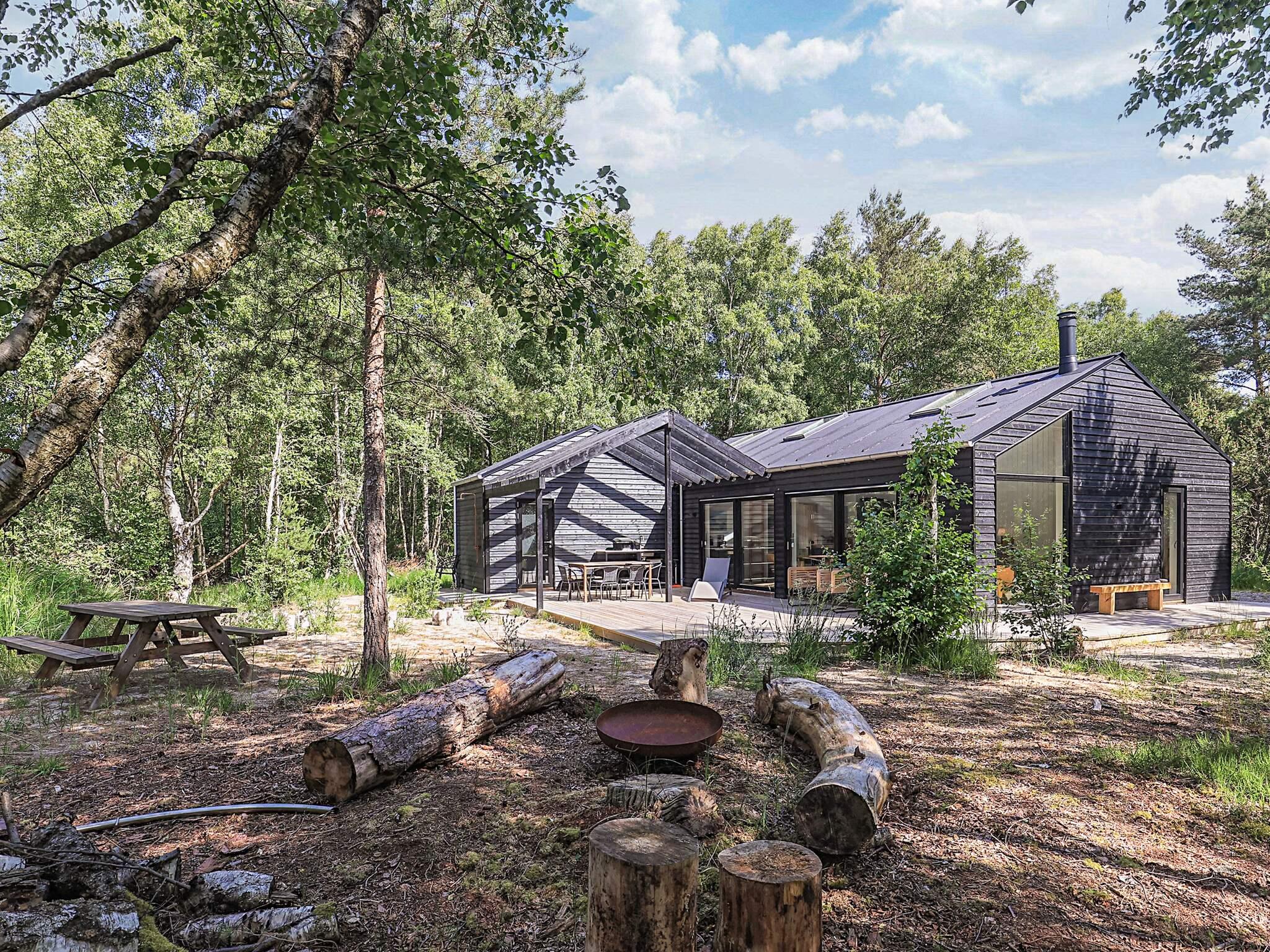 Det moderne feriehus er praktisk indrettet og smagfuldt og gennemtænkt indrettet. Den består af en stue med store vinduespartier, der giver et skønt lysindfald. Opholdsstuen har brændeovn og der er åbent køkken i forbindelse med spisestuen, 3 rummelige soveværelser og badeværelse med behagelig gulvvarme. Der er også en god hems med madrasser, hvor de større børn i familien kan trække sig tilbage og få lidt fred og ro.