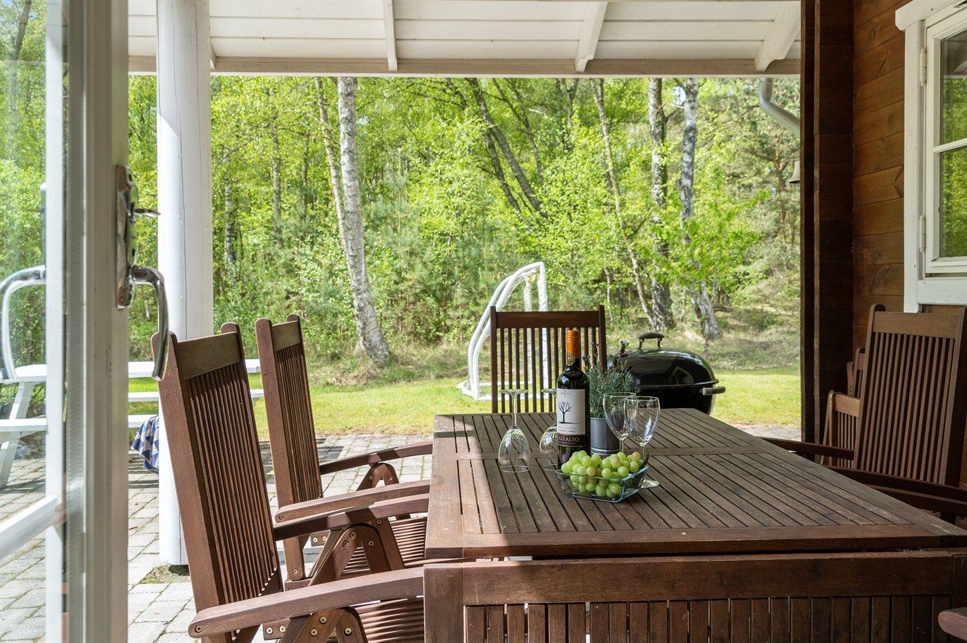 Ferieboligen er beliggende på en 6700 m² stor naturgrund. Der er 1300 m til havet. Nærmeste forretning er beliggende i en afstand af 1500 m. Der er en golfbane i en afstand af 3500 m. Til ferieboligen hører 140 m² terrasseareal. Desuden er der 12 m² overdækket terrasse. Der er redskabsrum. Gynge. Fodboldmål. Parkering ved ferieboligen.