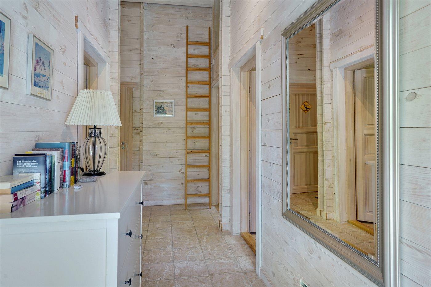 Eksklusivt bjælkehus på stor naturgrund nær havet, med sauna og moderne faciliteter.