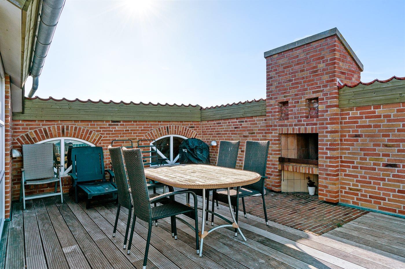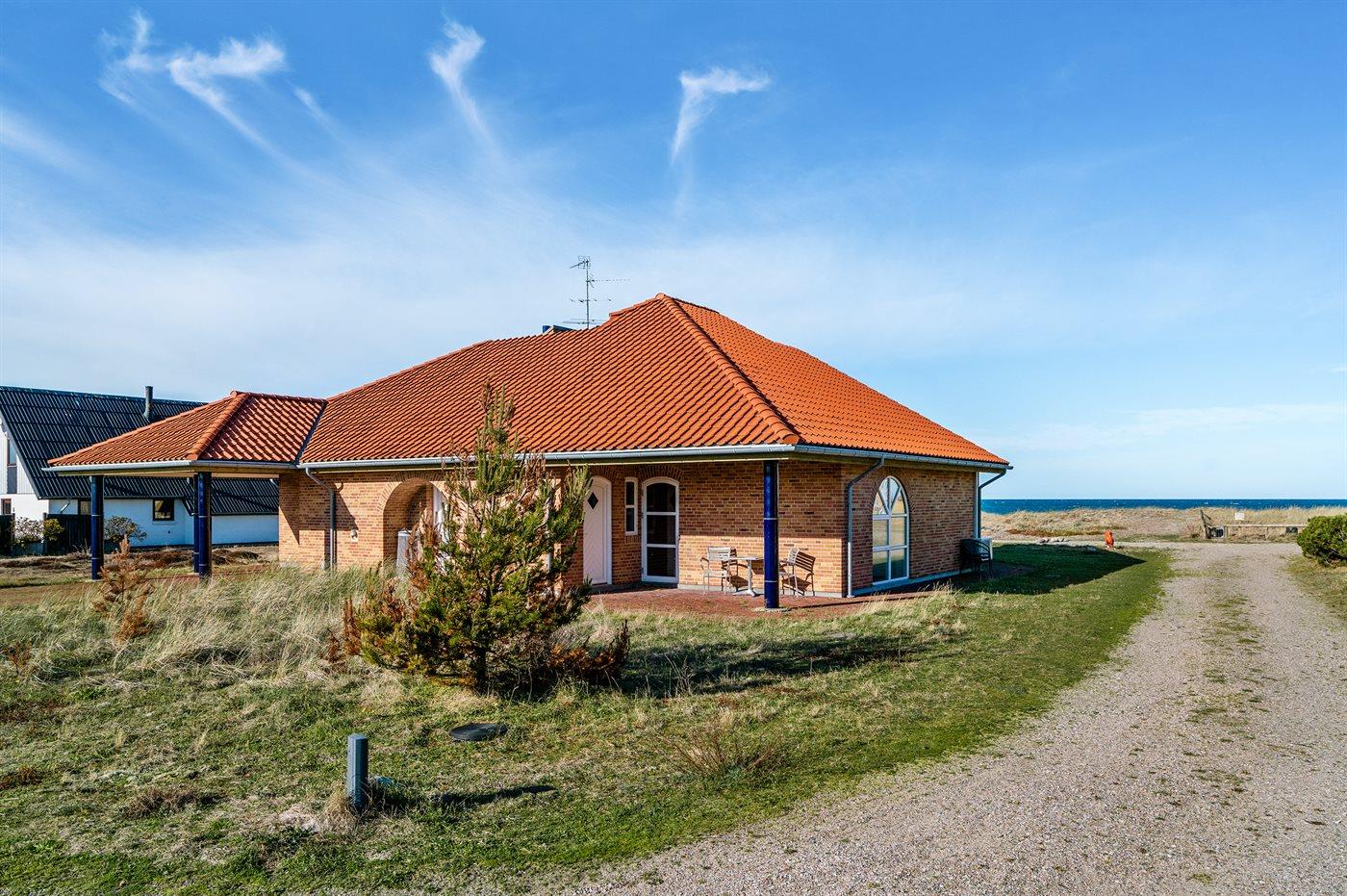 Ferieboligen er beliggende på en 800 m² stor naturgrund. Der er 120 m til havet. Nærmeste forretning er beliggende i en afstand af 300 m. På lune aftener sørger en udendørs pejs for hyggelig stemning. Parkering ved ferieboligen.