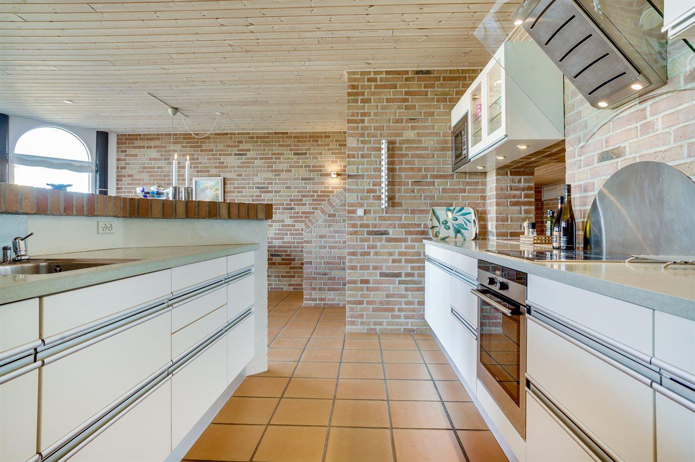 Køkkenet er udstyret med 1 køleskab. Der er 4 keramiske kogeplader, varmluftovn, mikrobølgeovn samt opvaskemaskine.