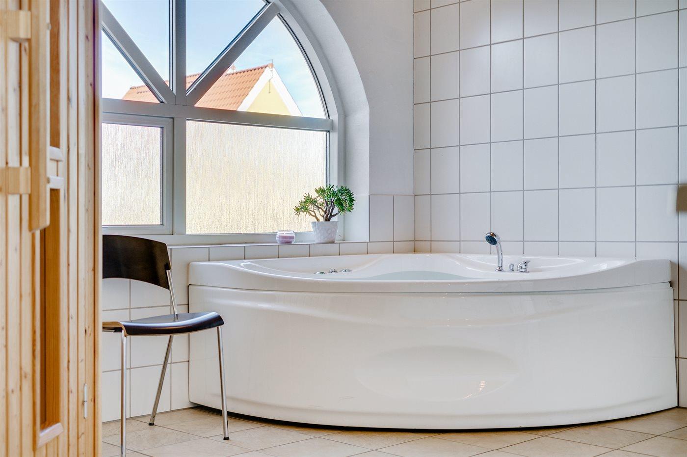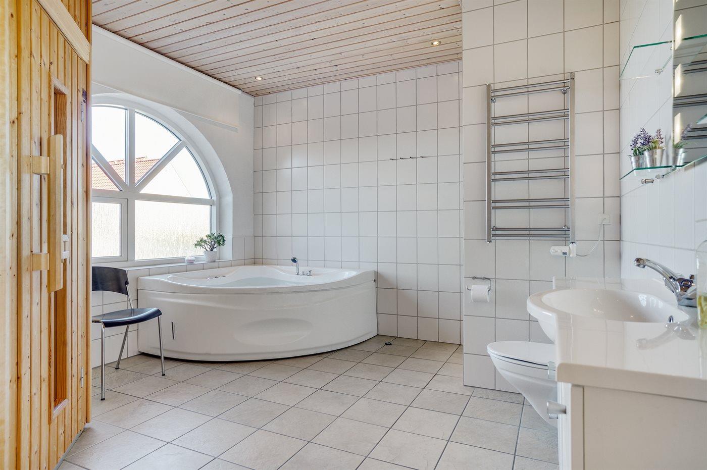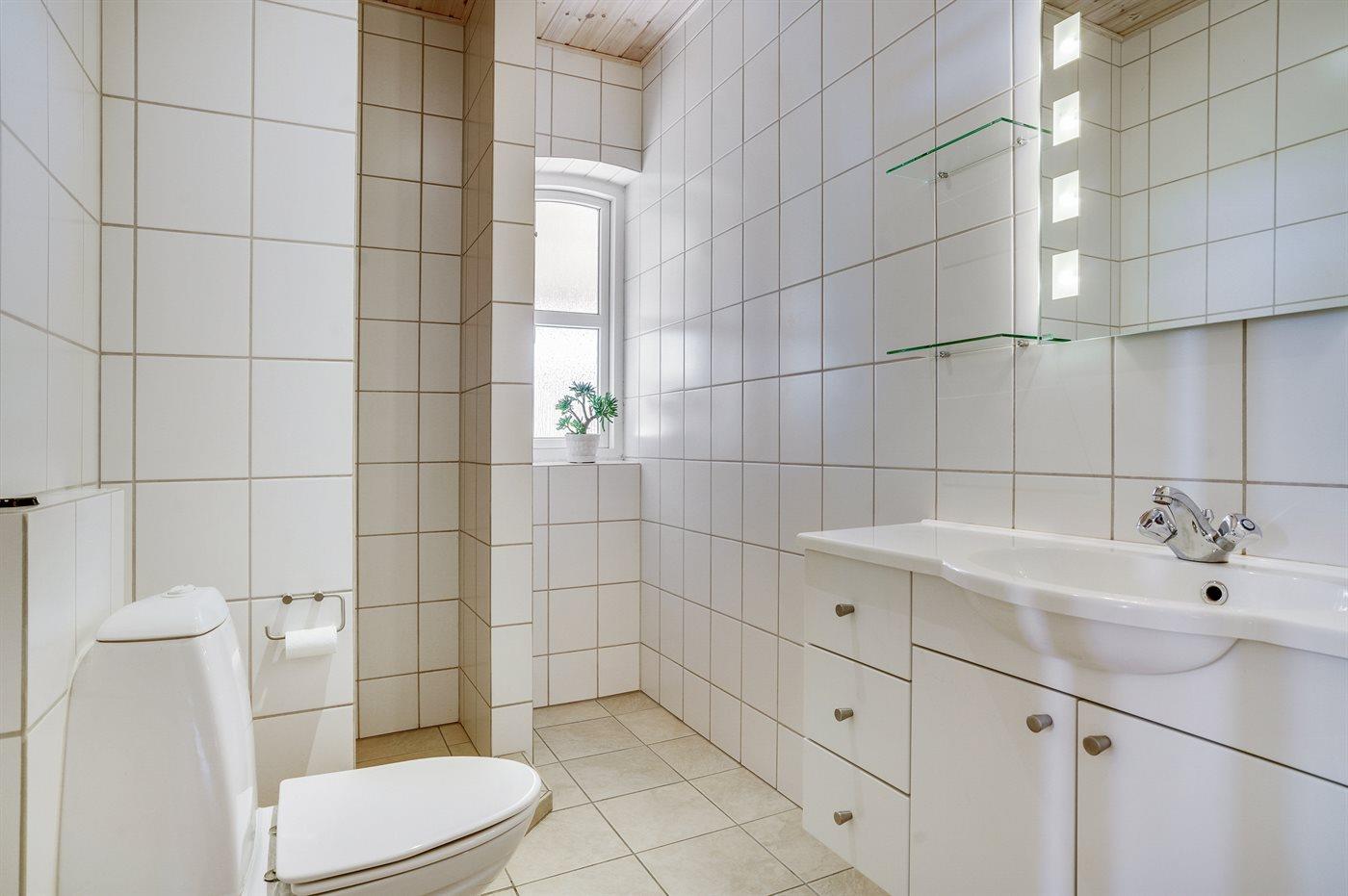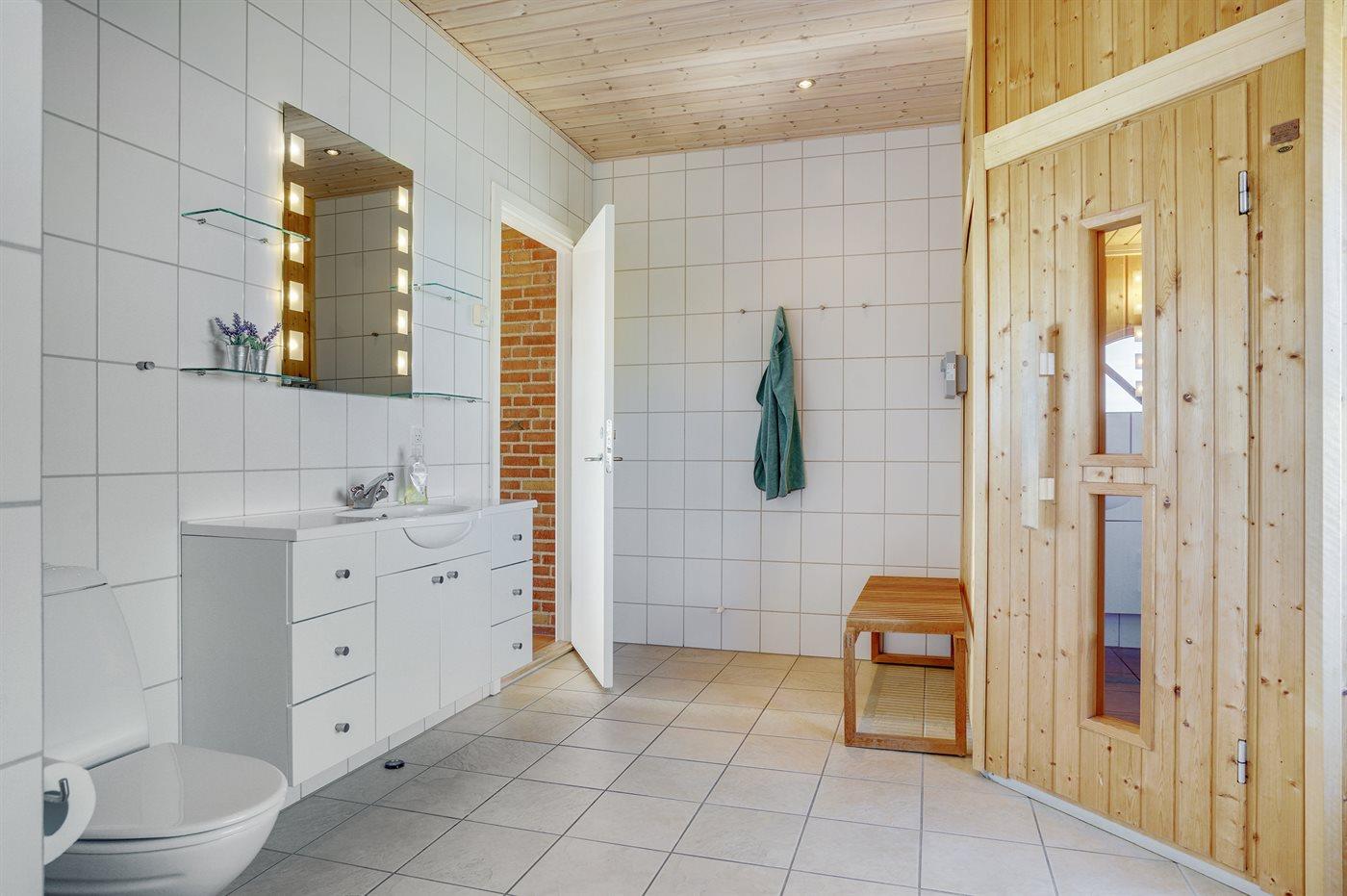 Der er 2 badeværelser med bruseniche og 2 toiletter I saunaen er der mulighed for afslapning.
