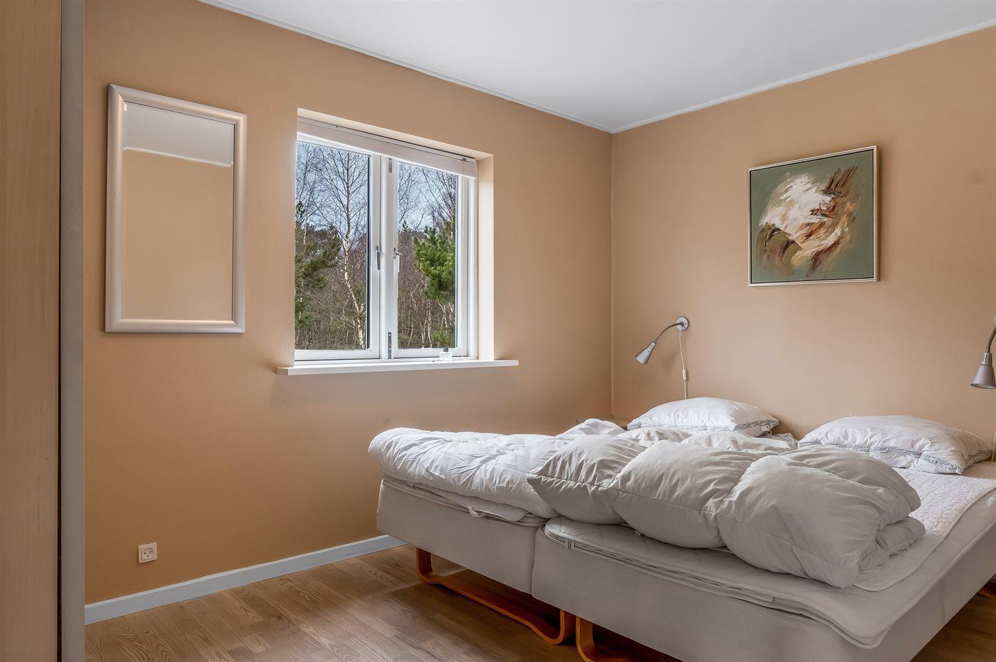 Der er i alt 3 soveværelser. Sovepladserne fordeler sig på: 6 sovepladser i dobbeltsenge. 3 sovepladser på madrasser. 3 af disse sovepladser befinder sig på husets hems.