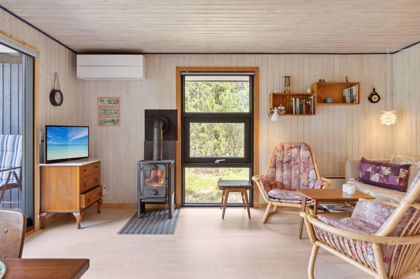 Sommerhuset egner sig til 3 personer. Ferieboligen er på 56 m² og er bygget i 1985. Det er tilladt at medbringe 1 husdyr. Ferieboligen er udstyret med 1 energibesparende luft til luft varmepumpe. Ferieboligen har vaskemaskine. Frysekapacitet på 10 liter. Der er desuden brændeovn.