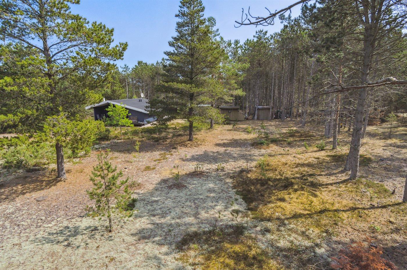 Ferieboligen er beliggende på en 5280 m² stor naturgrund. Der er 600 m til havet. Nærmeste forretning er beliggende i en afstand af 2000 m. Der er en golfbane i en afstand af 5600 m. Til ferieboligen hører åbent terrasseareal. Desuden er der overdækket terrasse. Der er redskabsrum. Gynge. Grill til rådighed. Parkering ved ferieboligen.