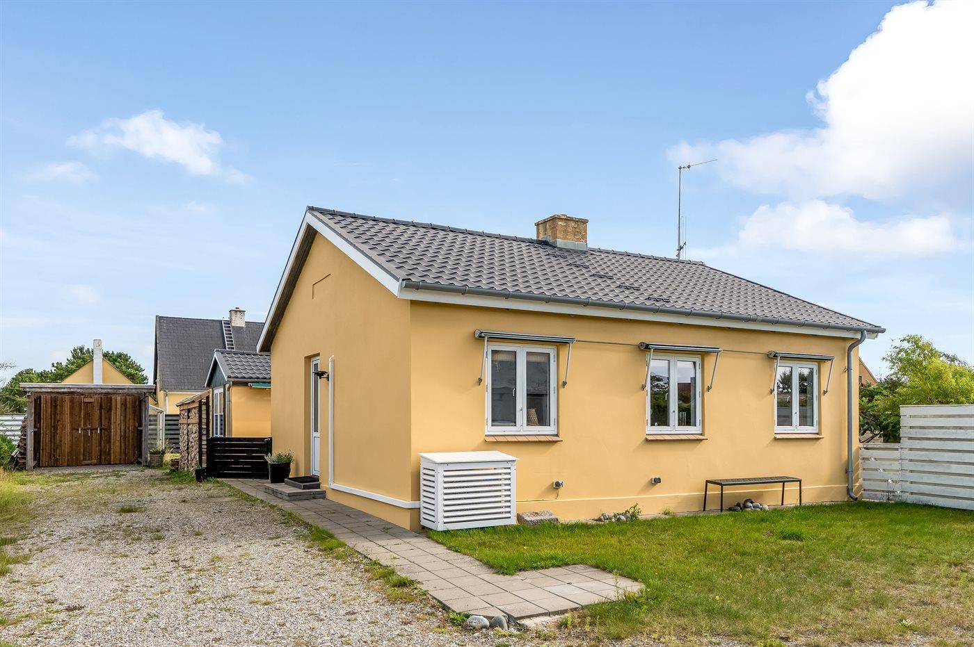 Ferieboligen er beliggende på en 739 m² stor havegrund. Grunden er indhegnet. Der er 270 m til havet. Nærmeste forretning er beliggende i en afstand af 255 m. Der er en golfbane i en afstand af 3200 m. Til ferieboligen hører åbent terrasseareal. Desuden er der overdækket terrasse. Der ligger en legeplads i en afstand af 345 m. Grill til rådighed. Parkering ved ferieboligen.