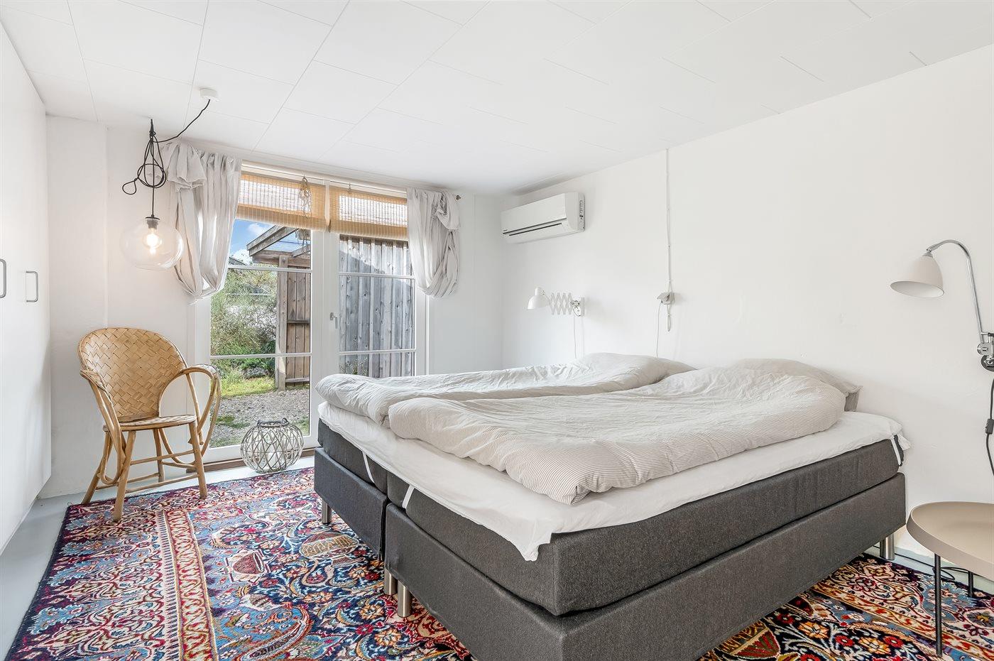 Der er i alt 3 soveværelser. Sovepladserne fordeler sig på: 6 sovepladser i dobbeltsenge. 4 af disse sovepladser befinder sig i 2 annekser - 2 sovepladser i hvert anneks. Derudover er der 2 stk. barnesenge.