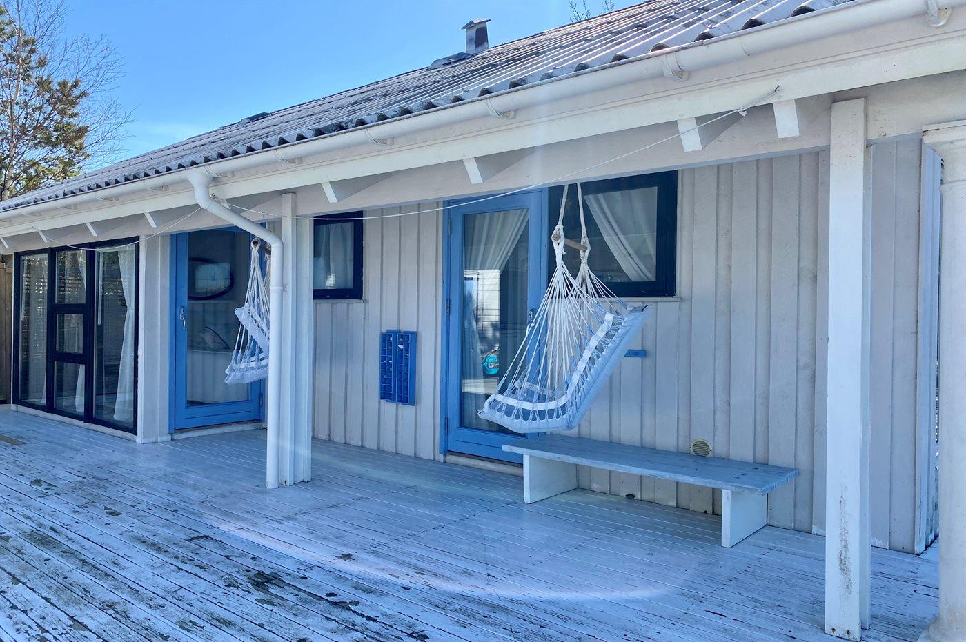Ferieboligen er beliggende på en 1905 m² stor naturgrund. Der er 150 m til havet. Nærmeste forretning er beliggende i en afstand af 900 m. Der er en golfbane i en afstand af 15000 m. Til ferieboligen hører åbent terrasseareal. Desuden er der overdækket terrasse. Der ligger en legeplads i en afstand af 900 m. Der er installeret stik til opladning af elbil. Parkering ved ferieboligen.
