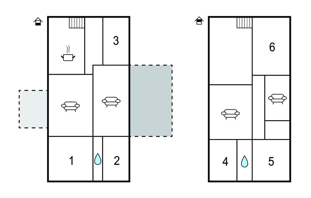 Soveværelse (nr. 1) - 1 Soveplads. (Enkeltseng(e)). 2 Sovepladser. (Dobbeltseng(e)).