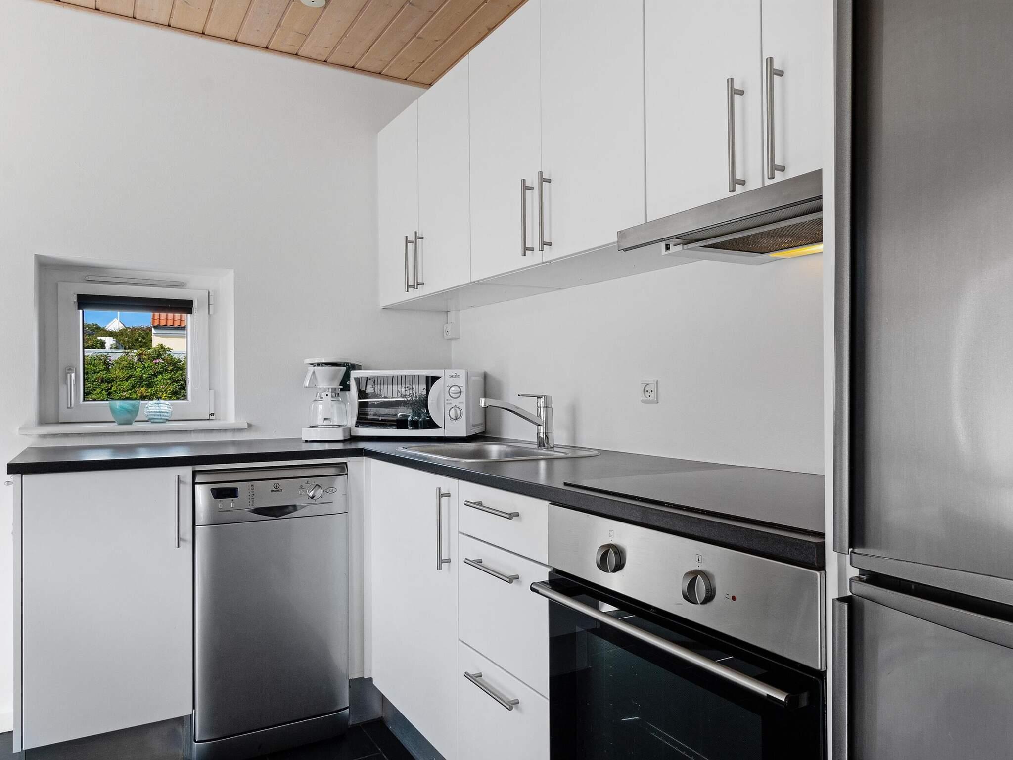 Køkken: Kulgrill, elkogepl., ovn, køleskab, køle-frys, mikroovn, kaffemaskine, opvaskemask.