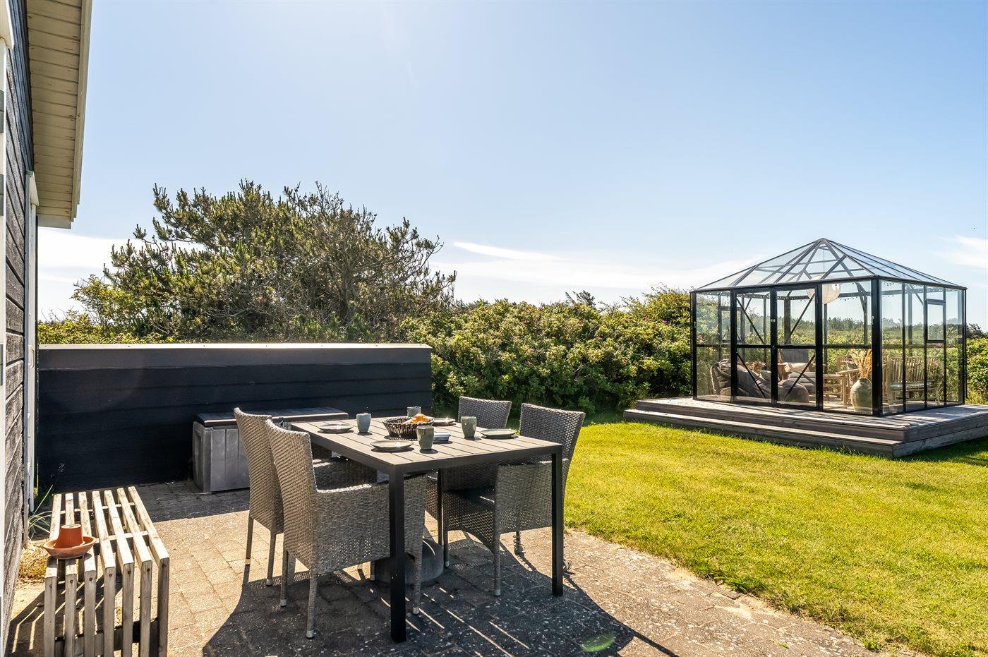 Ferieboligen er beliggende på en 1983 m² stor naturgrund. Der er 700 m til havet. Nærmeste forretning er beliggende i en afstand af 1400 m. Til ferieboligen hører 60 m² terrasseareal. Desuden er der 16 m² overdækket terrasse. Sandkasse. Der er installeret stik til opladning af elbil. Type 2 stik. Med 11 kW ladeeffekt. Parkering ved ferieboligen. Cykel står til rådighed. Vi garanterer ikke for cyklens stand, og al service på cyklen er gæsternes eget ansvar.
